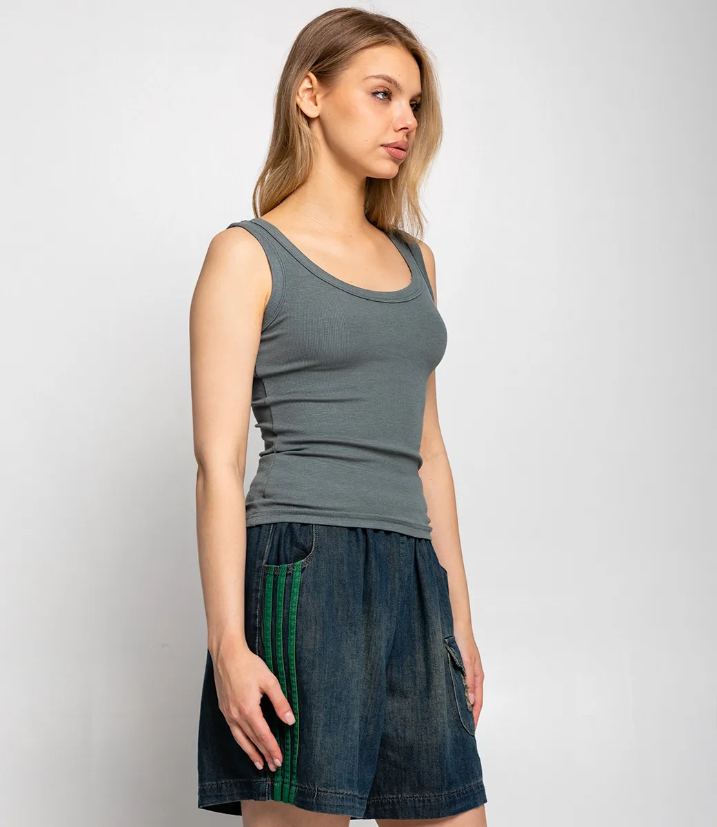 Майка выполнена из мягкого и эластичного материала, который обеспечивает комфорт при носке. Благодаря составу 95,1% вискоза и 4,9% спандекса, изделие хорошо тянется, сохраняет форму и не теряет цвет после стирки. Модель имеет округлый вырез, что делает её универсальной для повседневного гардероба. Материал устойчив к износу, что гарантирует долговечность изделия. Даже после многих стирок изделие не утратит первоначальной красоты. Вы обязательно будете ее носить с большим удовольствием. Чтобы вы были уверены в размере, мы представили на странице таблицу. Воспользовавшись ею, вы сможете сами сделать мерки и удостовериться. Предложенная нами цена является приемлемой. Не откажите себе в удовольствии быть элегантной!