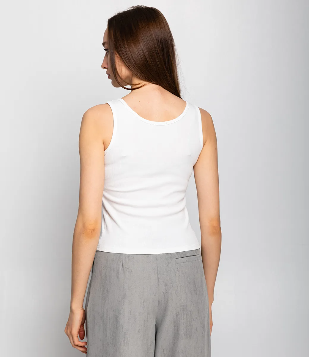 Майка является базовым элементом гардероба на каждый день. Данная модель благодаря высококачественному материалу приятна к телу и удобна в носке. Рост модели 168, 85-63-92.
