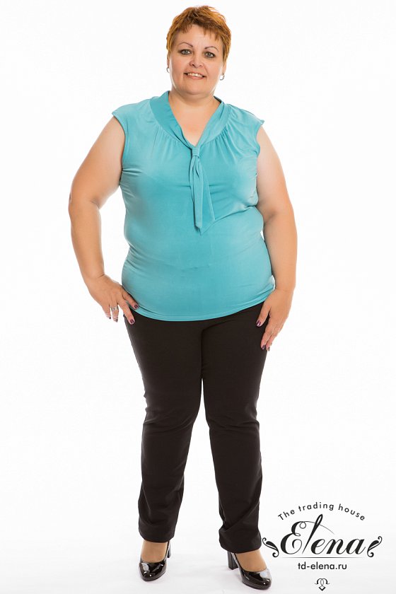 Майка со спущенным рукавом выполнена из вискозы с эластаном. Силуэт полуприлегающий. Горловина оформлена широкой планкой-галстуком, пропущенным через шлёвку.