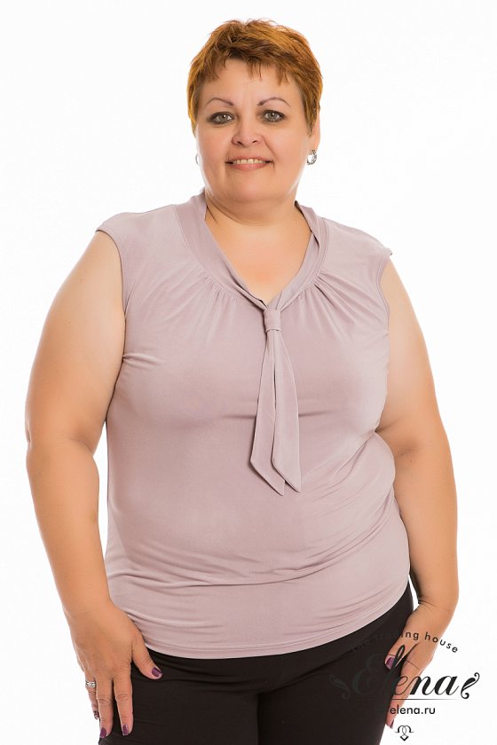 Майка со спущенным рукавом выполнена из вискозы с эластаном. Силуэт полуприлегающий. Горловина оформлена широкой планкой-галстуком, пропущенным через шлёвку.