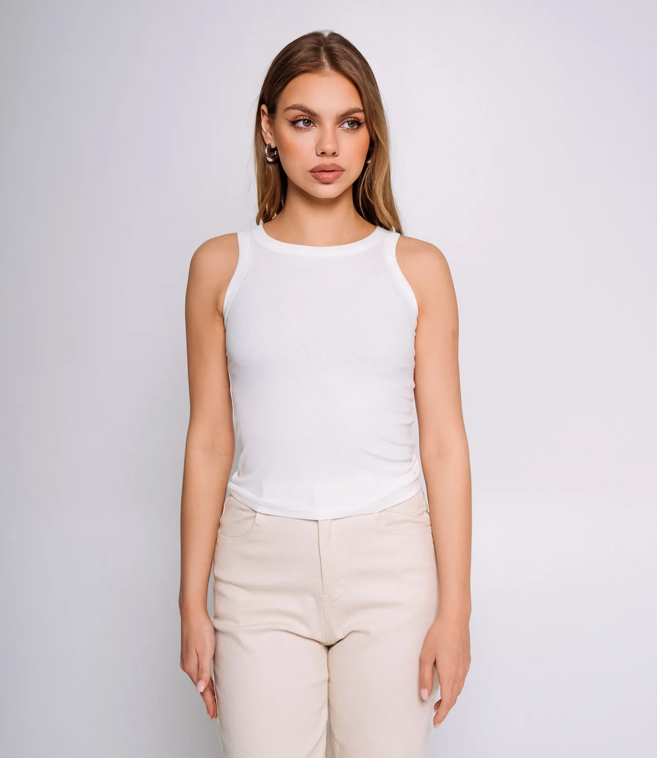 Майка является базовым элементом гардероба на каждый день. Данная модель благодаря высококачественному материалу приятна к телу и удобна в носке. Рост модели 168, 89-63-90.