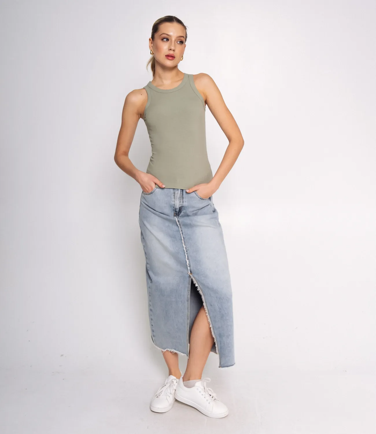 Майка является базовым элементом гардероба на каждый день. Данная модель благодаря высококачественному материалу приятна к телу и удобна в носке. Рост модели: 174, параметры: 80-58-88.