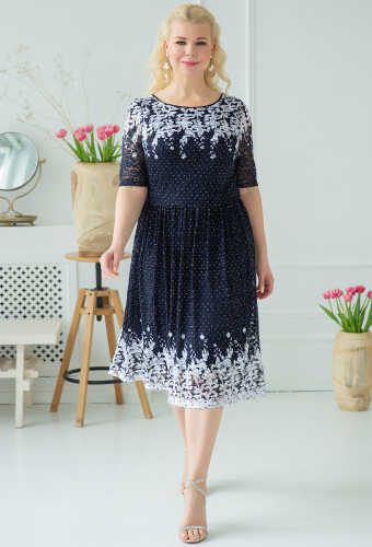 Нарядное двухслойное платье, прекрасно подчеркнет ваши достоинства, спрятав недостатки. Платье подойдет для любых торжеств. Нижнее платье выполнено из средней плотности трикотажа, не светится. Верхняя часть платья выполнена из шифоновых деталей, которые закреплены по горловине, имеют свободный летящий силуэт, что делает платье неповторимым. Платье имеет рукав ¾, украшены блестящей лентой.