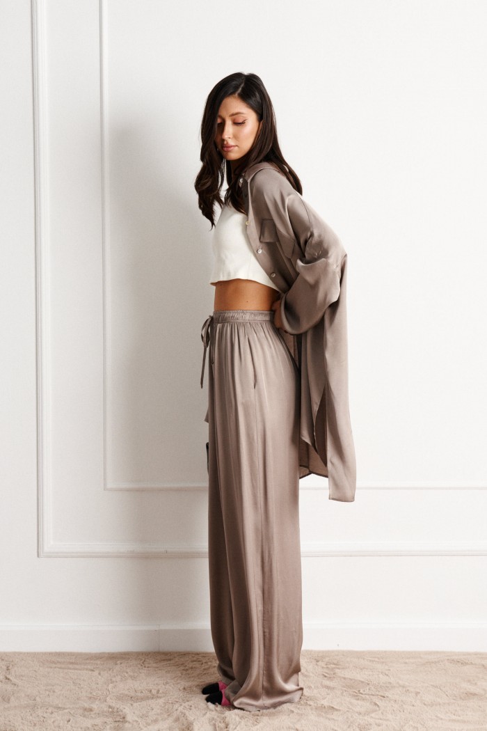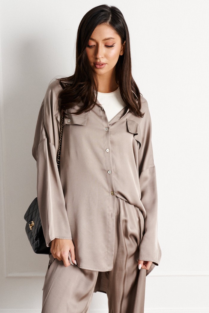 Рубашка прямого свободного кроя выполнена из вискозного полотна.