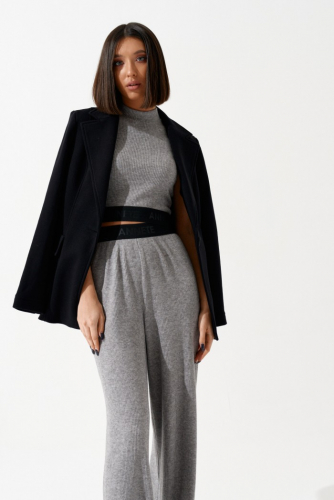 Брюки выполнены из трикотажного полотна. Характеристики: прямой свободный крой, пояс контрастная резинка с надписью ANNETE. Длина брюк 112 см.