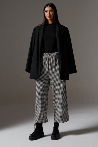 Кюлоты выполнены из трикотажного полотна с контрастным принтом. Кюлоты отличная замена для брюк, отличный вариант для осеннего образа в разных стилях.