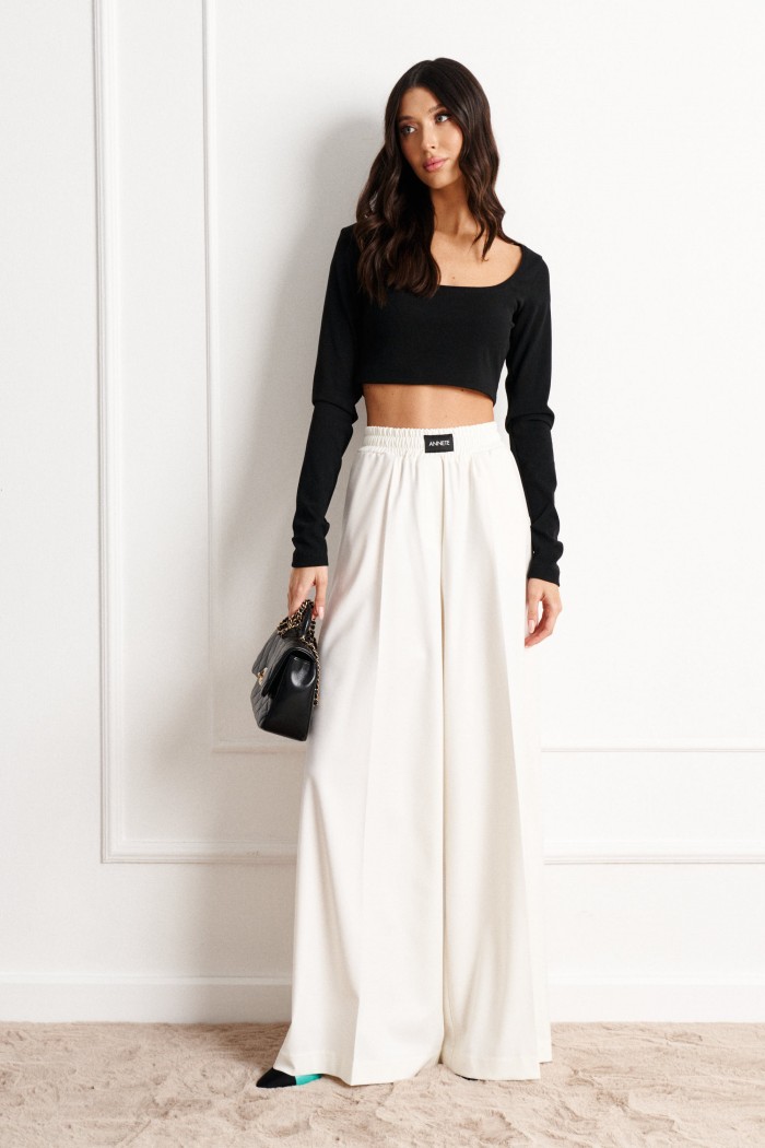 Укороченный джемпер выполнен из фактурной ткани черного цвета.
