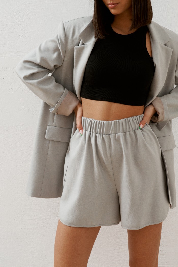 Шорты прямого кроя, с плавным срезом по низу, выполнены из легкой костюмной ткани. Шорты идеальный вариант дополнения повседневных образов.