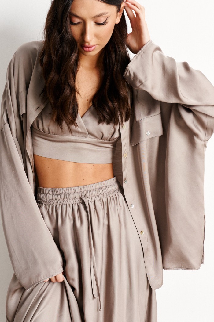 Характеристики: укороченный, фигурный вырез горловины, узкие бретели, по спинке резинка со сборкой, по переду под лифом стабильная вставка, застежки в изделии нет. Длина изделия 28 см.