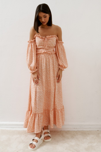 Юбка прямого свободного кроя выполнена из нежного полотна цвета персик с абстрактным цветочным принтом. Нежная деталь Вашего образа, сочетается с футболками, топом, рубашкой, джемпером.