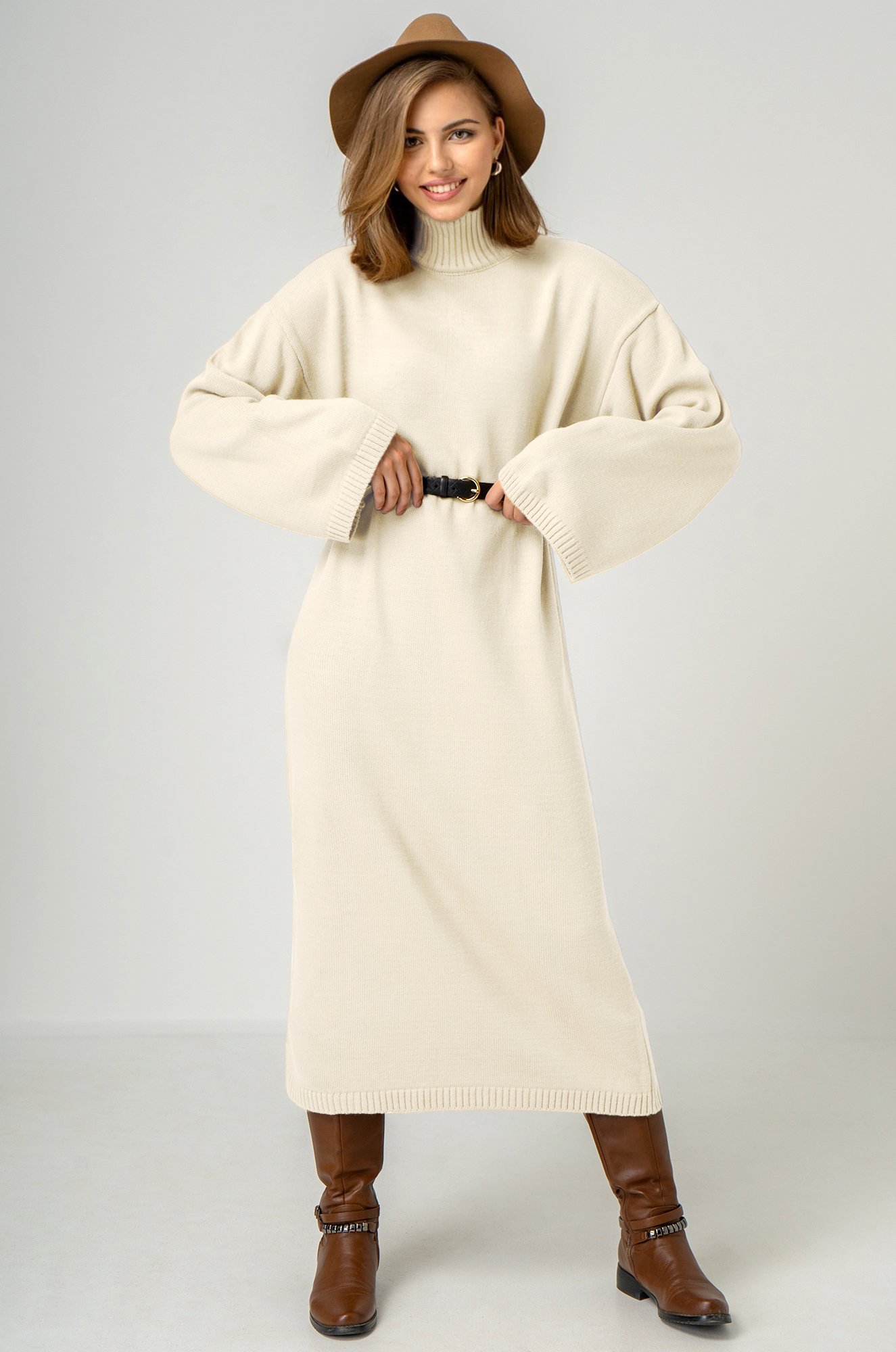 Женское платье молочного цвета выполнено из вязаного трикотажа с добавлением шерсти. Шерсть отличается естественным теплом и невероятной мягкостью.