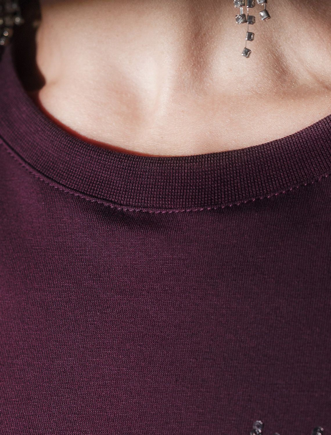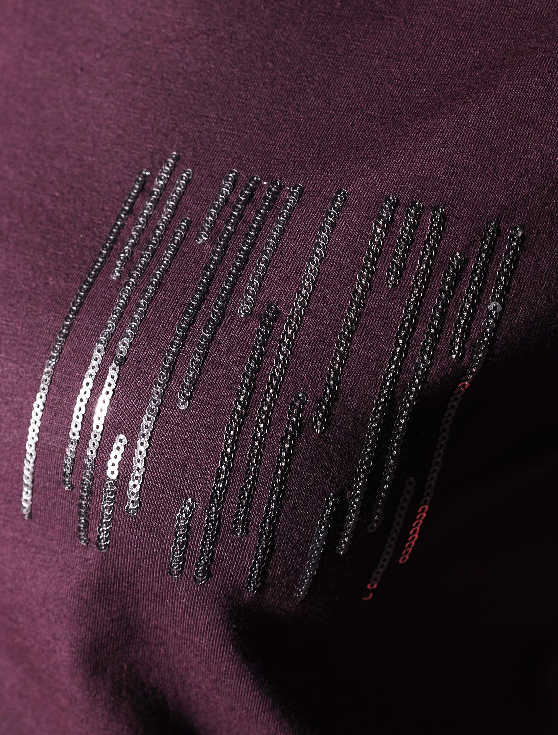 Женская футболка подчеркнет вашу индивидуальность и позволит вам выглядеть привлекательно в любой ситуации. Легкость в уходе и высокая износостойкость делают ее незаменимой вещью в вашем гардеробе. Благодаря сочному дизайну и качественной отделке, футболка легко сочетается с различными элементами гардероба, позволяя создавать уникальные комплекты для разных случаев. Она станет ярким акцентом в вашем гардеробе и подарит уверенность на любом событии. Такой вариант одежды станет отличной базой для стильного и эффектного образа на праздничное событие, корпоратив, Новый Год. бургунди_блестки
