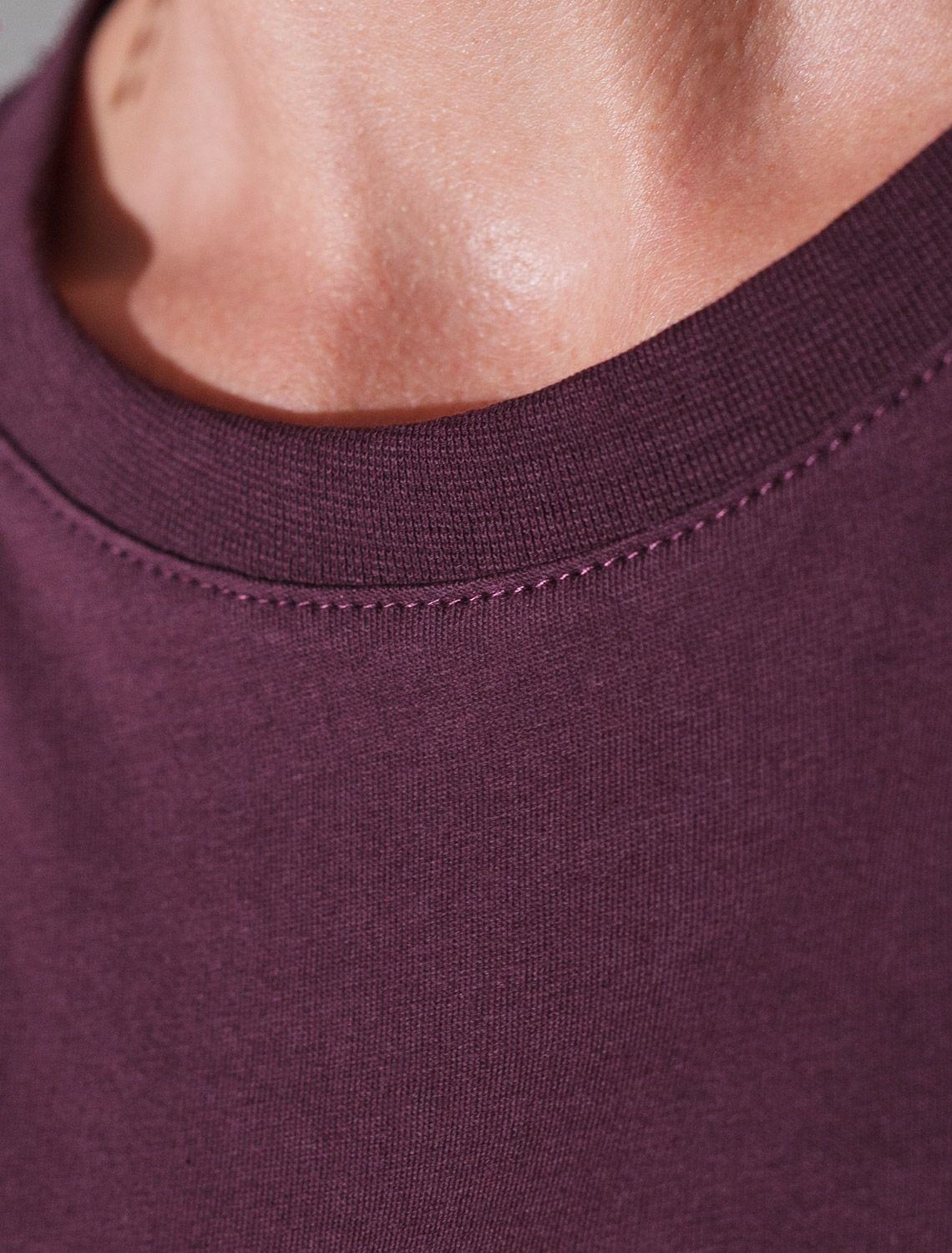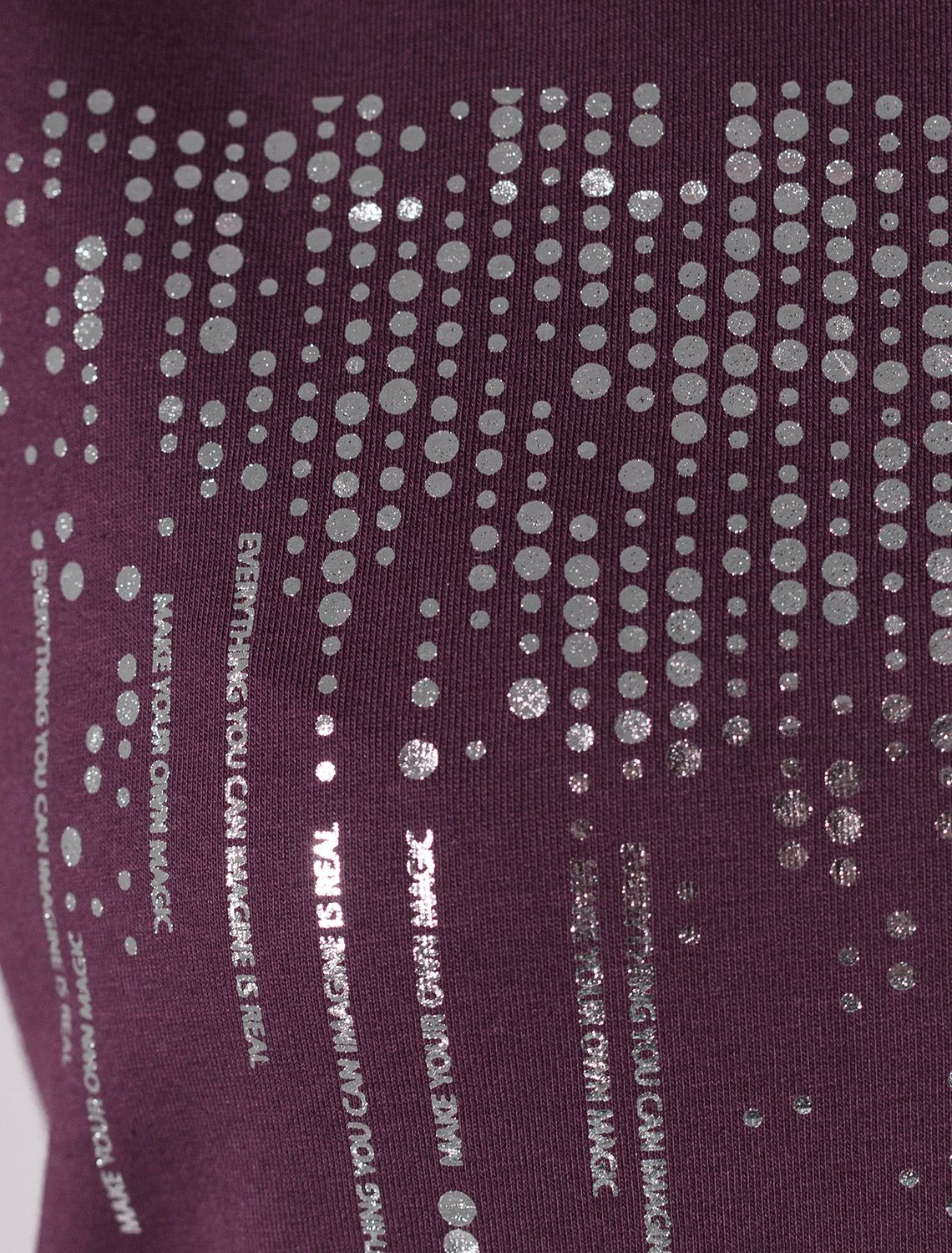 Футболка цвета бургунди идеально подходит для вечеринки и создания яркого образа. Оригинальный принт из серебристой фольги придает изделию шикарный вид, который привлечет внимание на любом мероприятии. Модель с круглым вырезом и классическим коротким рукавом обеспечивает свободу движений и комфорт в носке. Такой фасон изделия подходит на большие размеры, гармонично сидит на фигуре и помогает создать легкий акцент на достоинствах. Аккуратный круглый вырез красиво подчеркивает шею и делает образ элегантным, сохраняя актуальность для разных случаев — от рабочих встреч до вечерних прогулок и праздничных мероприятий.