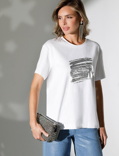 Нарядная футболка с принтом фольгой из премиального хлопка с эластаном D49.124 белый_magic