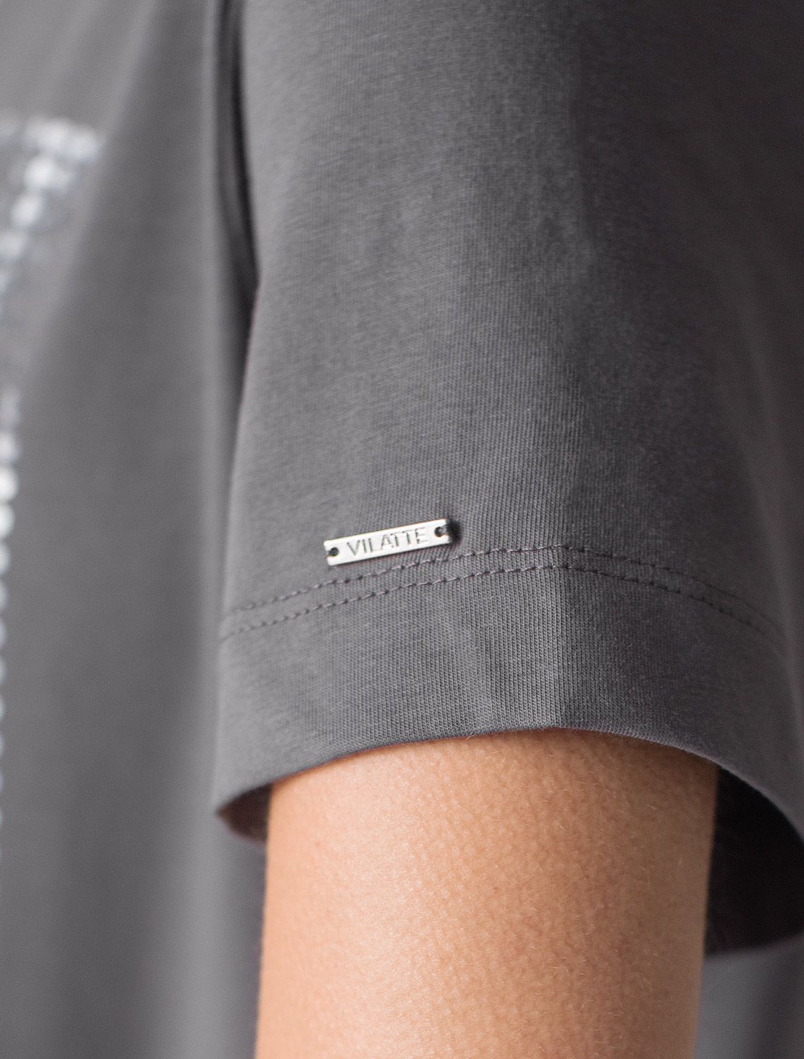 Нарядная футболка с принтом фольгой из премиального хлопка с эластаном D49.124 т.серый_фольга