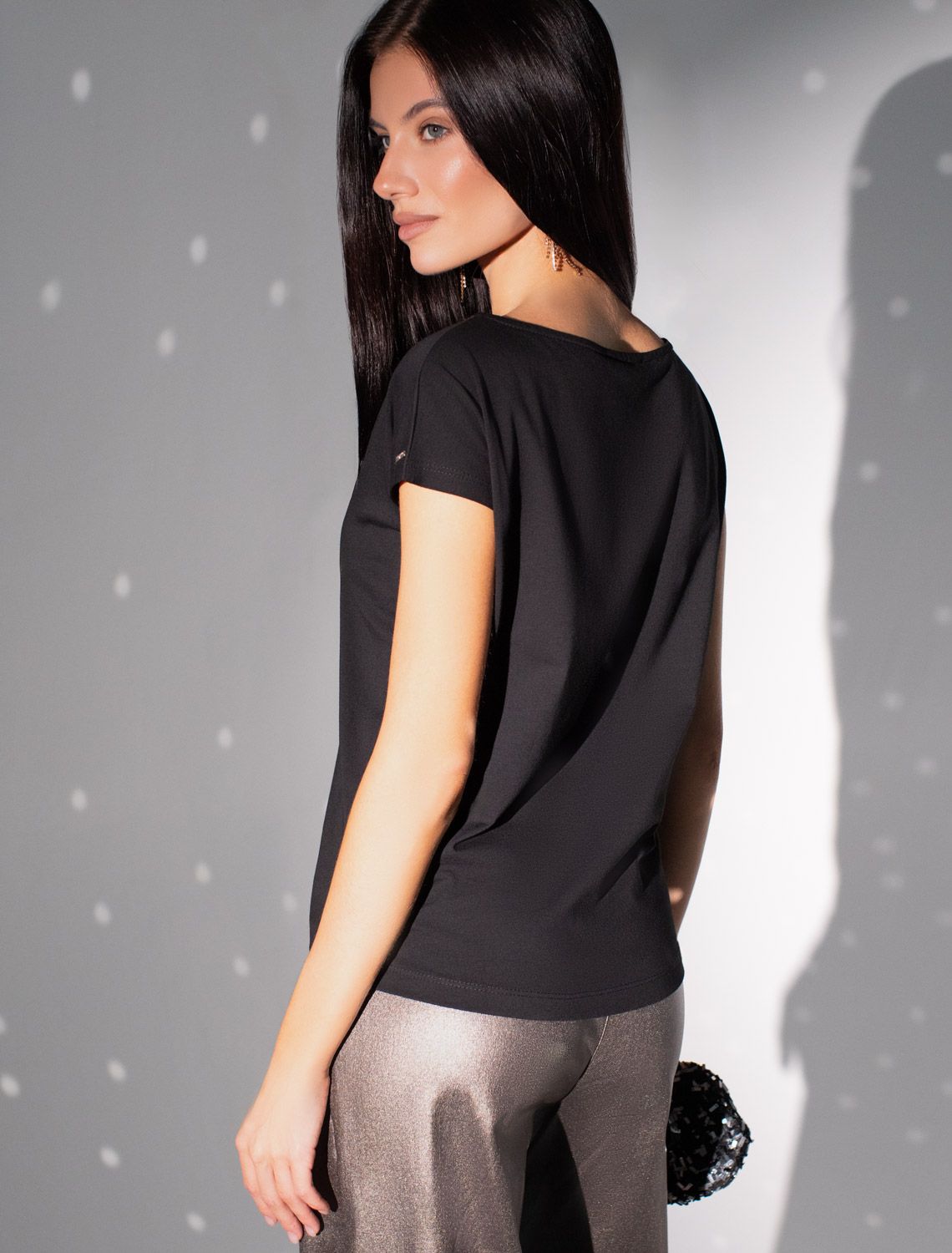 Эта нарядная футболка подходит для создания образа на каждый день и идеально подойдет на выход. Модель не мнется, что делает ее практичным вариантом для активных женщин, которые ценят стиль и удобство.