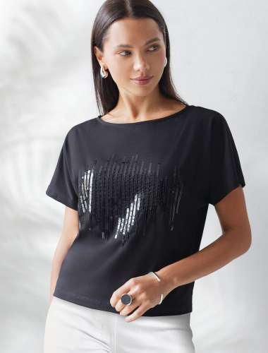 Нарядная футболка с принтом пайетками из премиального хлопка с эластаном