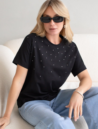 Нарядная футболка с принтом пайетками из премиального хлопка с эластаном D49.124 черный_рыба