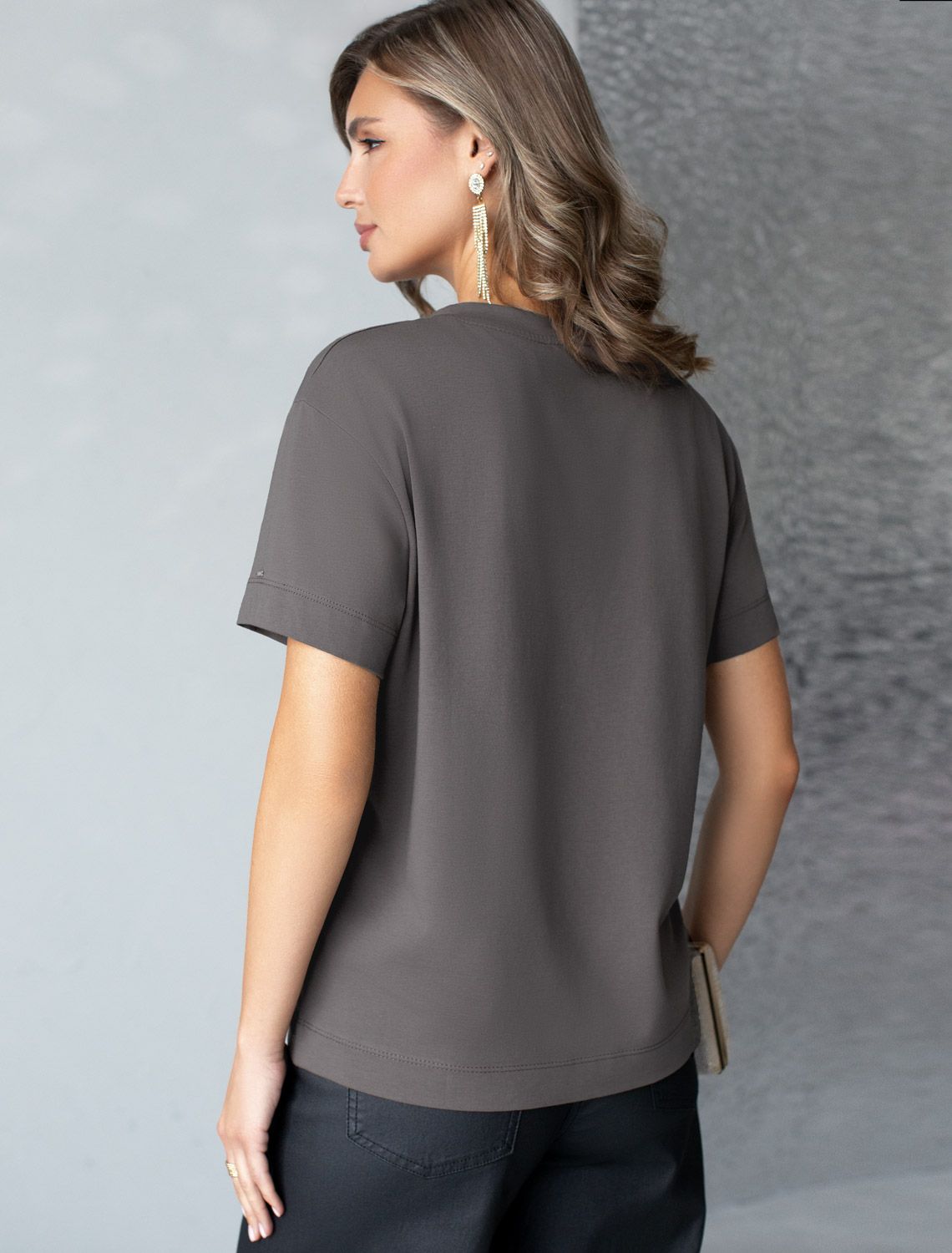 Стильная базовая футболка темно-серого цвета с серебристым принтом пайетками выполнена из плотного хлопка с эластаном для комфортной посадки на любую фигуру. Прямая футболка классического кроя с круглым вырезом, прекрасно подходит для разных типов фигуры, в том числе и на большие размеры. Мягкость хлопка вместе с небольшой долей эластана гарантирует идеальную посадку и свободу движений. Легкая натуральная дышащая ткань премиального качества делает футболку с коротким рукавом идеальным вариантом для повседневной носки дома, на работу или офис. Однотонная футболка дополнена авторским аккуратным принтом зебра, который придает праздничный и элегантный вид без лишней вычурности. Блестящий анималистичный принт аккуратно украшает, добавляя изысканный акцент и создавая легкий мерцающий эффект.