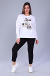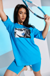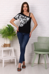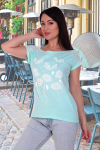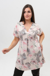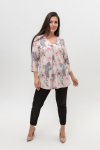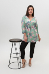 Туника женская с нежным принтом в виде жар-птицы, из трикотажного полотна СОТЫ. Модель полуприталенного силуэта, горловина в виде лодочки обработана обтачкой, спущенная пройма на широком манжете, в боковых швах удобные карманы. Низ спинки удлинён, по бокам небольшие разрезы. Трикотаж СОТЫ имеет оригинальный рисунок, образованный переплетением волокон, внешне напоминает пчелиные соты. Полотно мягкое, эластичное и прочное, легко стирается, практически не мнётся, не деформируется.