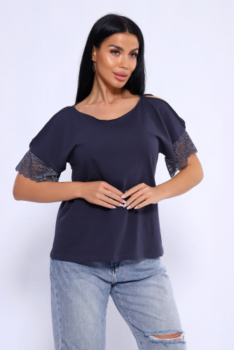 Футболка женская из гипоаллергенного хлопкового трикотажа - кулирки высокого качества пенье компакт. Модель слегка приталенного силуэта, горловина и спущенная пройма обработаны краёвкой, что придаёт футболке некую изюминку и индивидуальность. Пройма обработана широким, жаккардовым кружевом в виде короткого рукава. Стильная, комфортная футболка необходимая вещь для модницы любого возраста и фигуры, подойдет как для офисного гардероба так и для отдыха, активного занятия спортом.