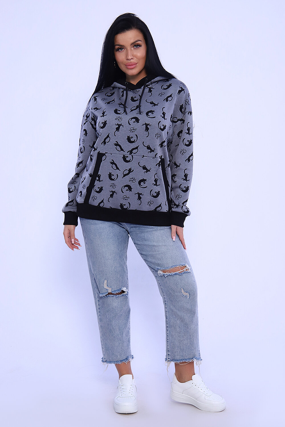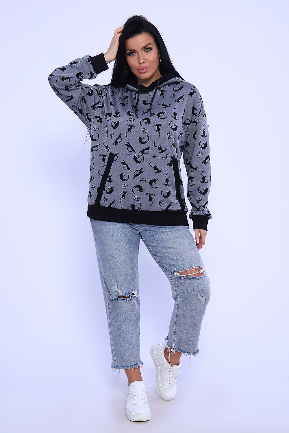 Молодёжная толстовка-худи из теплого трикотажа на меху. Толстовка в свободном стиле-оверсайз с удобным карманом-кенгуру, спущенная пройма, длинный рукав, капюшон с игривыми ушками. Низ джемпера, манжеты, капюшон и вход в карман-кенгуру обработаны эластичной кашкорсе. Стильная, комфортная толстовка не стесняет движения, отличный вариант для занятия спортом, а так же для прогулок в холодное время года.