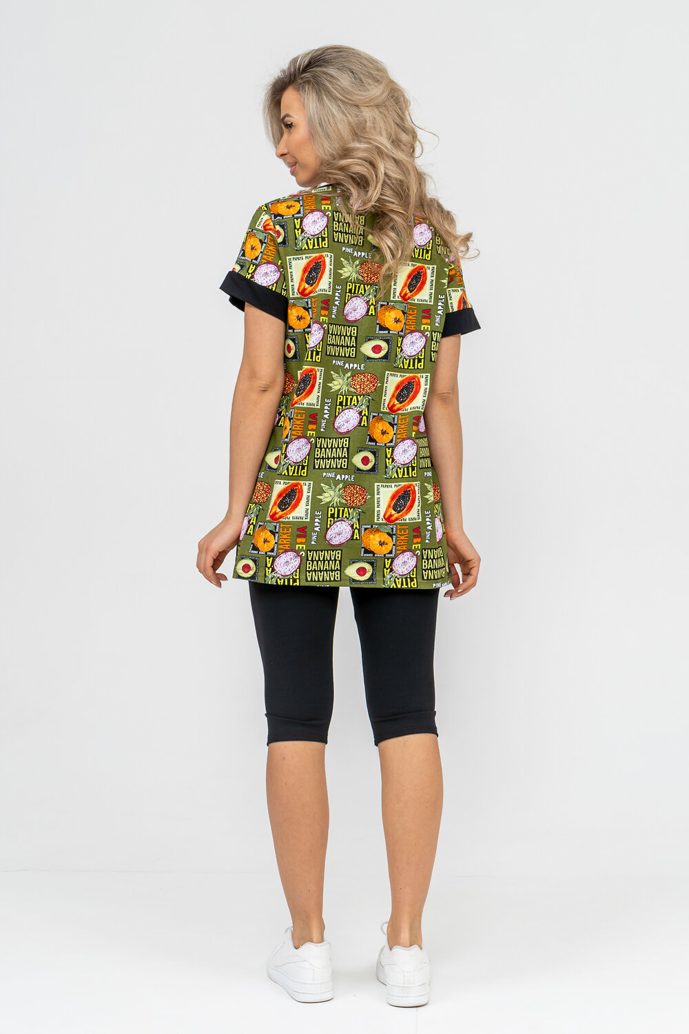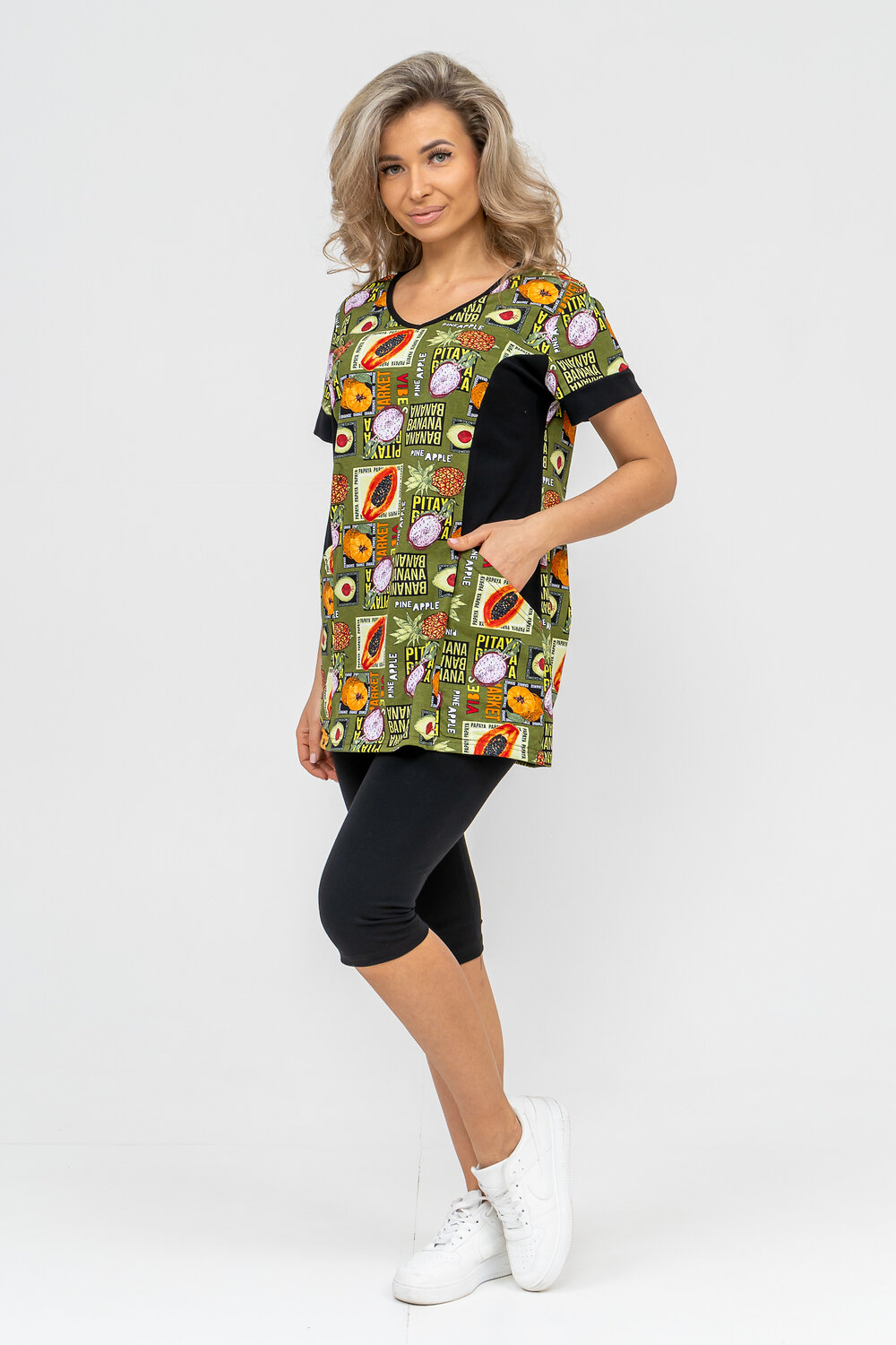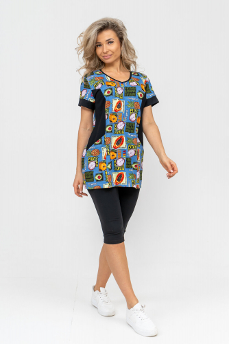Женский костюм полуприлегающего силуэта состоит из туники и бриджей. 100% дышащий хлопок туники и эластичная вискоза бриджей несут в себе удобство при носке, гигроскопичность и износостойкость. V-образный вырез горловины придаёт изделию женственный вид. Для удобства туника имеет вместительные накладные карманы и втачные рукава с манжетами. Рельефы на полочке изделия создают идеальную посадку и безупречный внешний вид. Бриджи на резинке с высокой посадкой. В костюме такого плана Вы будете чувствовать себя комфортно как дома, так и на любимой даче. Эта двойка идеально подойдет для летнего отдыха на даче, на море или просто для девушек, которые хотят чувствовать себя уютно и комфортно дома. Летний женский костюм подходит для поездок и путешествий, загородного отдыха на природе, а также для получения лечения в больнице или санатории. Повседневное хлопковое изделие с бриджами - отличная идея для подарка любимой жене, маме, сестре или подруге на день рождения, 8 Марта или по любому другому приятному поводу. Рекомендация: для того чтобы продлить яркую жизнь Вашему костюму для дома и отдыха из хлопка, стирку производить при температуре не выше 30 градусов, а во избежание деформации изделия не прибегать к ручному отжиму (не перекручивать), утюжить слегка недосушенное изделие утюгом на паровом режиме. Покупайте наши красивые и удобные домашние костюмы с бриджами и носите с удовольствием! Приятных покупок!
