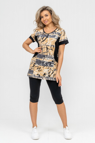 Женский костюм полуприлегающего силуэта состоит из туники и бриджей. 100% дышащий хлопок туники и эластичная вискоза бриджей несут в себе удобство при носке, гигроскопичность и износостойкость. V-образный вырез горловины придаёт изделию женственный вид. Для удобства туника имеет вместительные накладные карманы и втачные рукава с манжетами. Рельефы на полочке изделия создают идеальную посадку и безупречный внешний вид. Бриджи на резинке с высокой посадкой. В костюме такого плана Вы будете чувствовать себя комфортно как дома, так и на любимой даче. Эта двойка идеально подойдет для летнего отдыха на даче, на море или просто для девушек, которые хотят чувствовать себя уютно и комфортно дома. Летний женский костюм подходит для поездок и путешествий, загородного отдыха на природе, а также для получения лечения в больнице или санатории. Повседневное хлопковое изделие с бриджами - отличная идея для подарка любимой жене, маме, сестре или подруге на день рождения, 8 Марта или по любому другому приятному поводу. Рекомендация: для того чтобы продлить яркую жизнь Вашему костюму для дома и отдыха из хлопка, стирку производить при температуре не выше 30 градусов, а во избежание деформации изделия не прибегать к ручному отжиму (не перекручивать), утюжить слегка недосушенное изделие утюгом на паровом режиме. Покупайте наши красивые и удобные домашние костюмы с бриджами и носите с удовольствием! Приятных покупок!