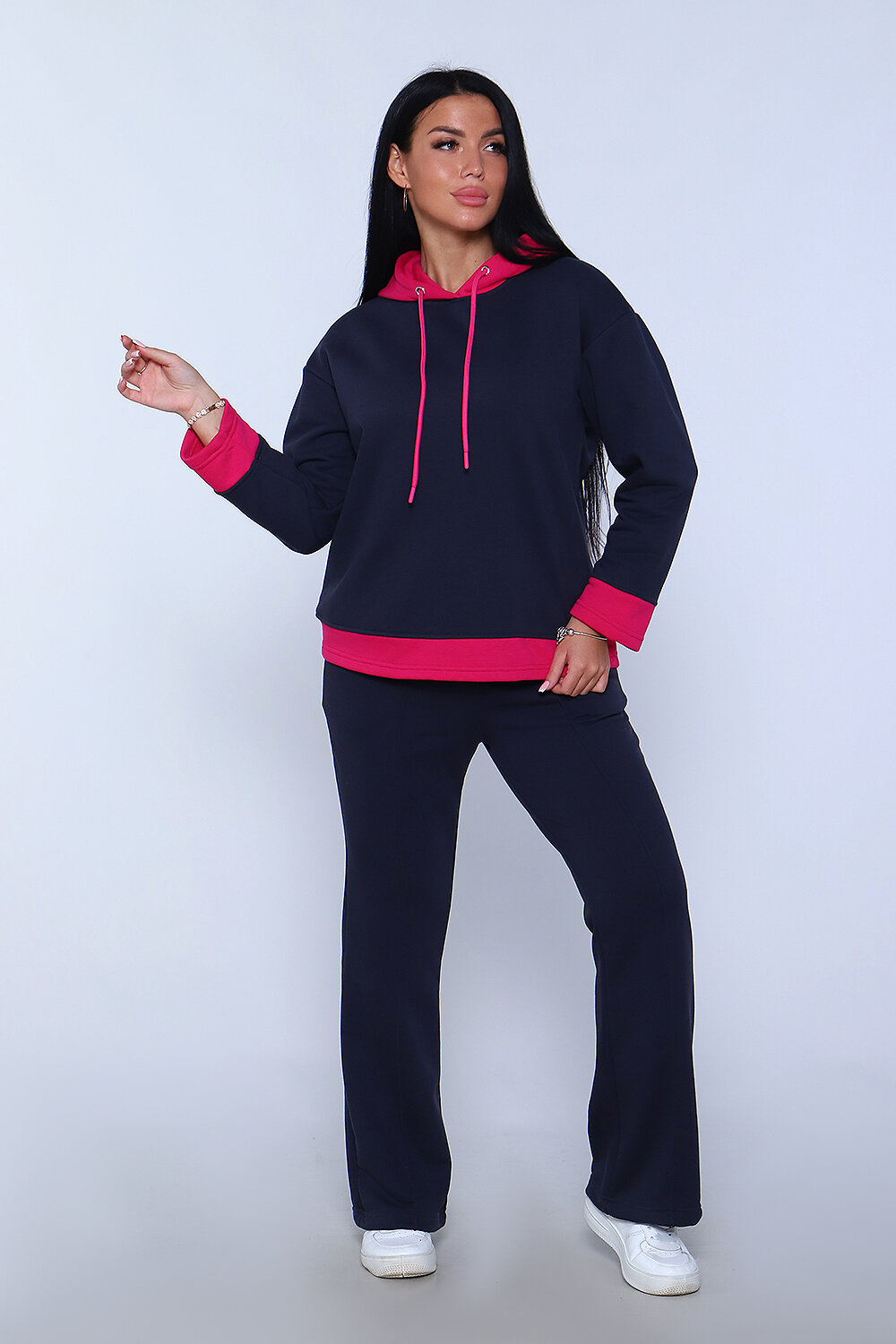 Элегантный женский костюм полуприлегающего силуэта, состоящий из худи и брюк сшит из трикотажного полотна премиум качества - футер 3-х нитка петля без начеса. Высокое качество ткани обеспечит комфорт и удобство на долгое время. Хлопковая изнаночная сторона изделия дарит комфортные ощущения при ношении костюма. Брюки силуэта клеш с широким поясом с декоративной отсрочкой и с отстроченной стрелкой на передней половине брюк, что вытягивает силуэт и визуально делает ноги длиннее, что добавляет женственности образу. В боковых швах брюк расположены карманы с отрезным бочком. Худи прямое, свободное с длинными рукавами. Низ рукава и низ худи отделаны декоративными манжетами контрастного цвета. Вырез горловины округлый, с двойным капюшоном контрастного цвета в тон манжет. Объём капюшона регулируется декоративным шнурком. Сочетание комфорта и стиля делает этот костюм модным и удобным для каждой девушки и женщины. Идеальный комплект обеспечивает удобную посадку на любую фигуру, позволяет свободно двигаться, гулять, отдыхать и заниматься спортом, благодаря тому, что костюм не сковывает движения. Базовые расцветки, прекрасно сочетающиеся цвета основной ткани и ткани - компаньона позволят подобрать тот костюм, который идеально соответствует вашему вкусу и предпочтениям. Стильный костюм подойдёт для любого времени года, на любую погоду. Удобный костюм подойдет как для домашнего, так и уличного ношения. Для беременных и молодых мам! Идеальный подарок прекрасным женщинам!
