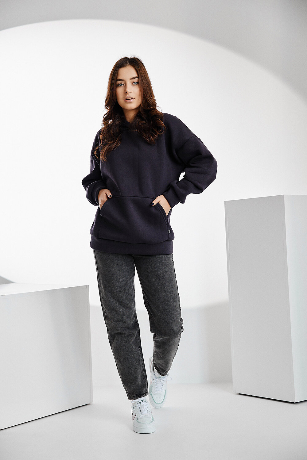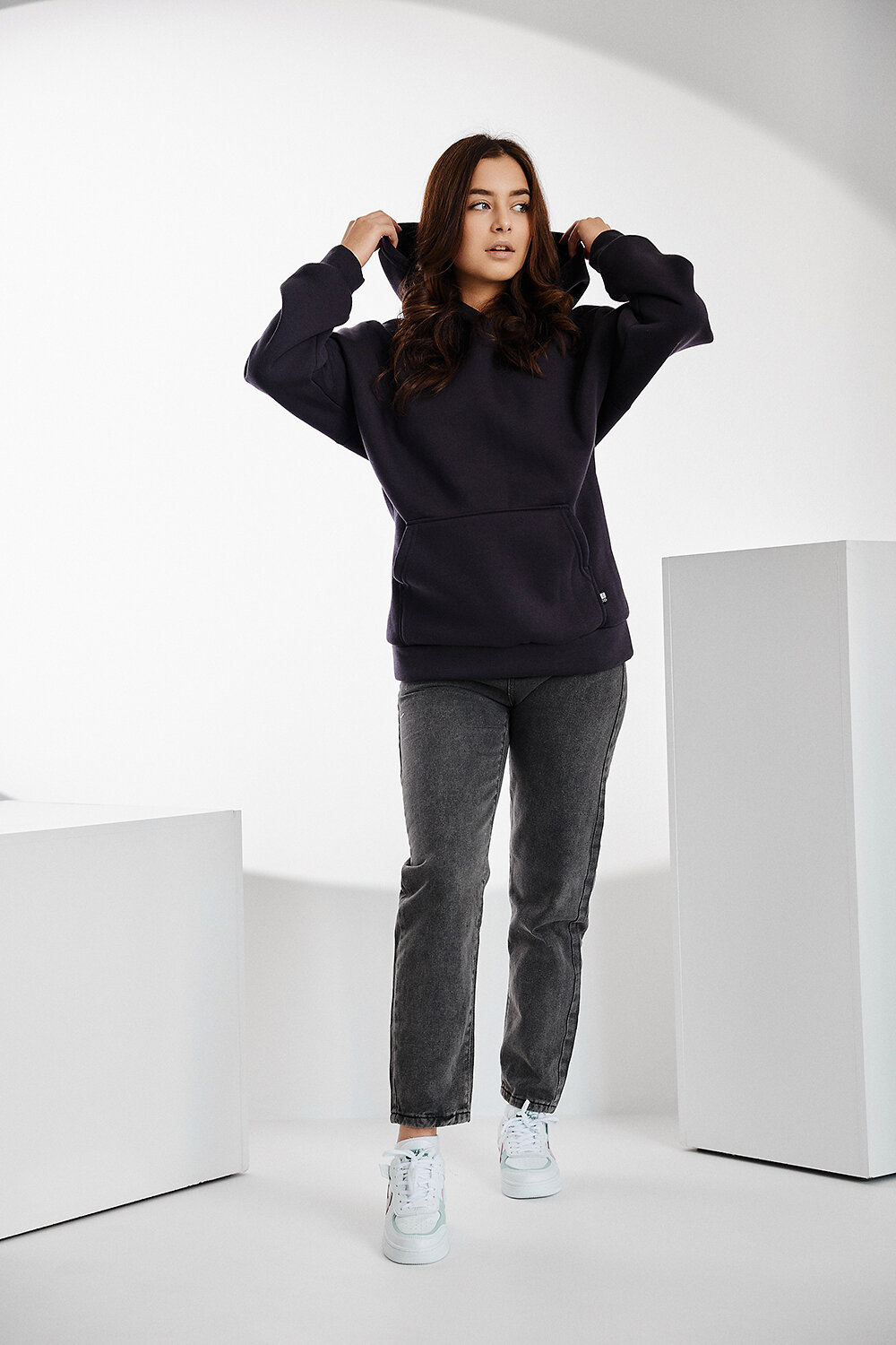 Уютное худи свободного кроя с объемным капюшоном, спущенным плечом и удобным карманом кенгуру. Оверсайз крой не сковывает движений, изделие хорошо держит форму. Толстовка из трикотажного футера с мягким начесом очень теплая и приятная к телу. Худи одинаково стильно будет смотреться на разных типах фигуры. Красивые насыщенные цвета и минималистичный дизайн сделают эту базовую вещь самой любимой в вашем гардеробе.Худи эффектно смотрится с любыми джинсами: укороченными и широкими, клеш и бойфредами.