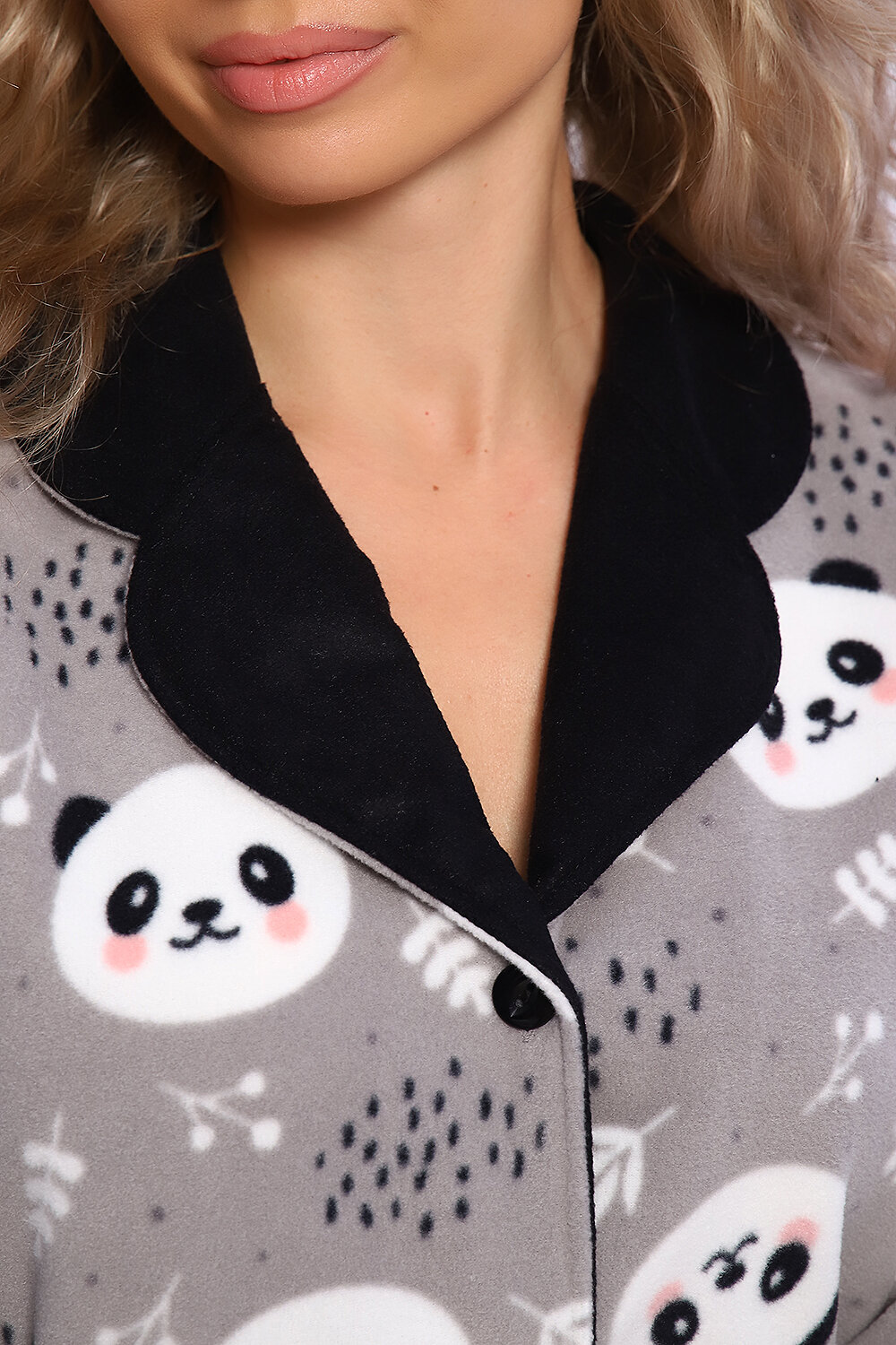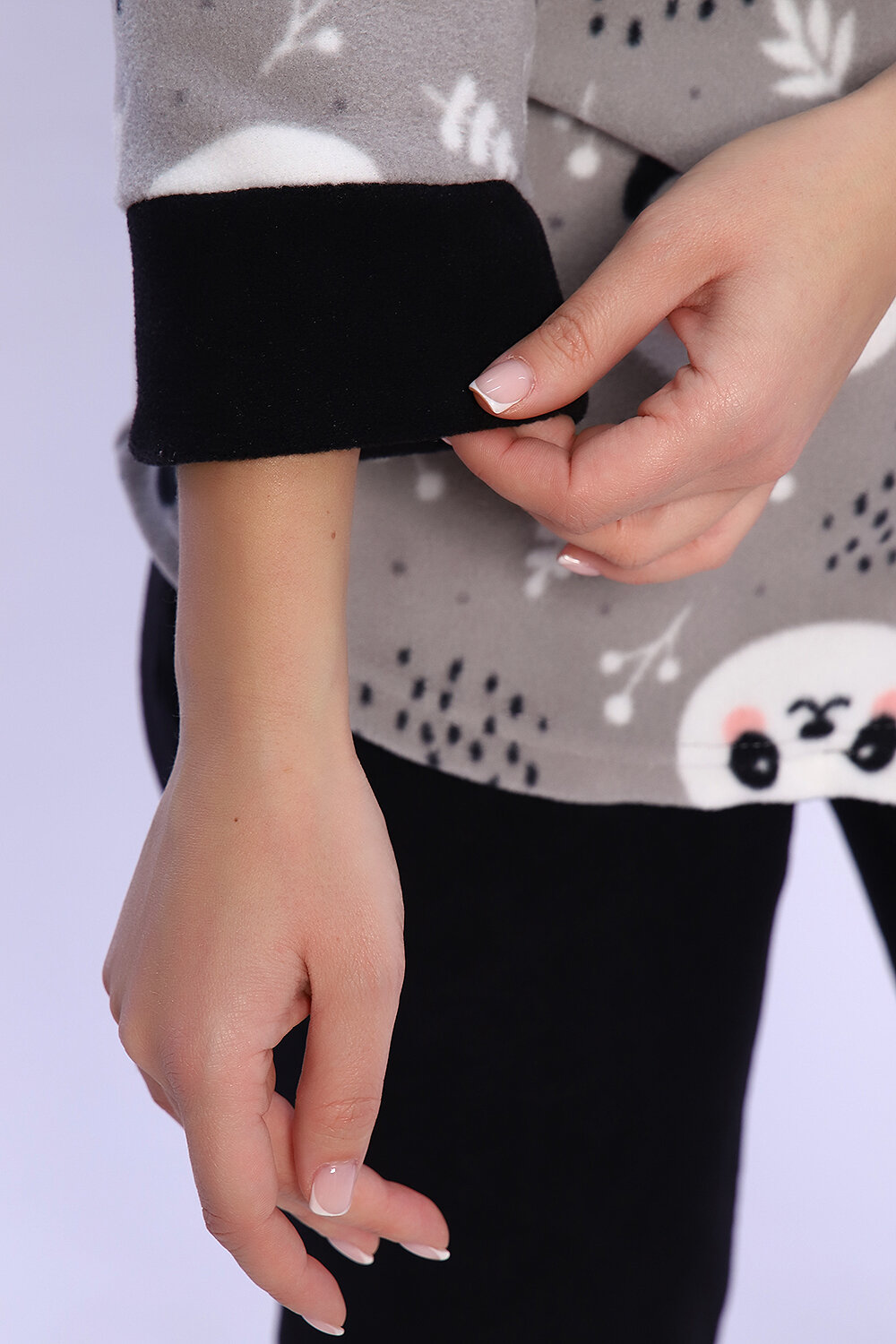Домашний женский костюм из мягкой, нежной на ощупь и очень теплой флисовой ткани. Состоит из жакета на пуговицах с воротником пиджачного типа и приталенных брюк на широкой резинке, с боковыми карманами со скошенным входом. Рукав жакета втачной с манжетами в тон брюк и длиной 3/4, что делает костюм удобным при занятии домашними делами. Универсальный, удобный костюм-пижама подойдет для сна, для отдыха, занятий зимними видами спорта и просто прогулок на свежем воздухе. Удобный домашний комплект для женщин и девушек устойчив в процессе эксплуатации. Не садится, практически не мнется и не растягивается. Одежда для дома из флиса - нежная и воздушная, удобная и комфортная в использовании. Прекрасно подойдет для беременных и кормящих мам. Модель сшита размер в размер, поэтому любителям свободной одежды рекомендуем заказывать на размер больше. Другие расцветки данной модели Вы можете найти в артикулах: 71084, 71051, 71049. Хороший подарок милым дамам на день рождения, 8 Марта, Новый год и по любому поводу!