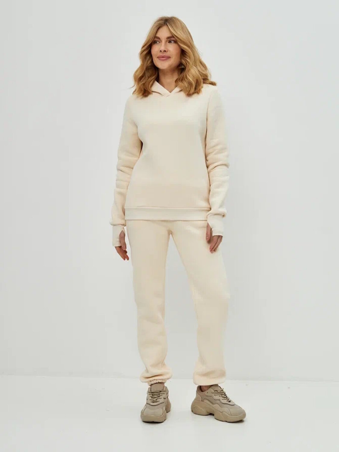 Костюм с начёсом прекрасный вариант повседневной одежды для осени и зимы. Толстовка прямого кроя, имеет классическую пройму с втачным рукавом и удлиненными манжетами с отверстием для большого пальца. Капюшон однослойный, он прекрасно защитит голову в прохладную погоду. Брюки на резинке, с боковыми наклонными карманами, по низу штанины вшита внутрь резинка.
