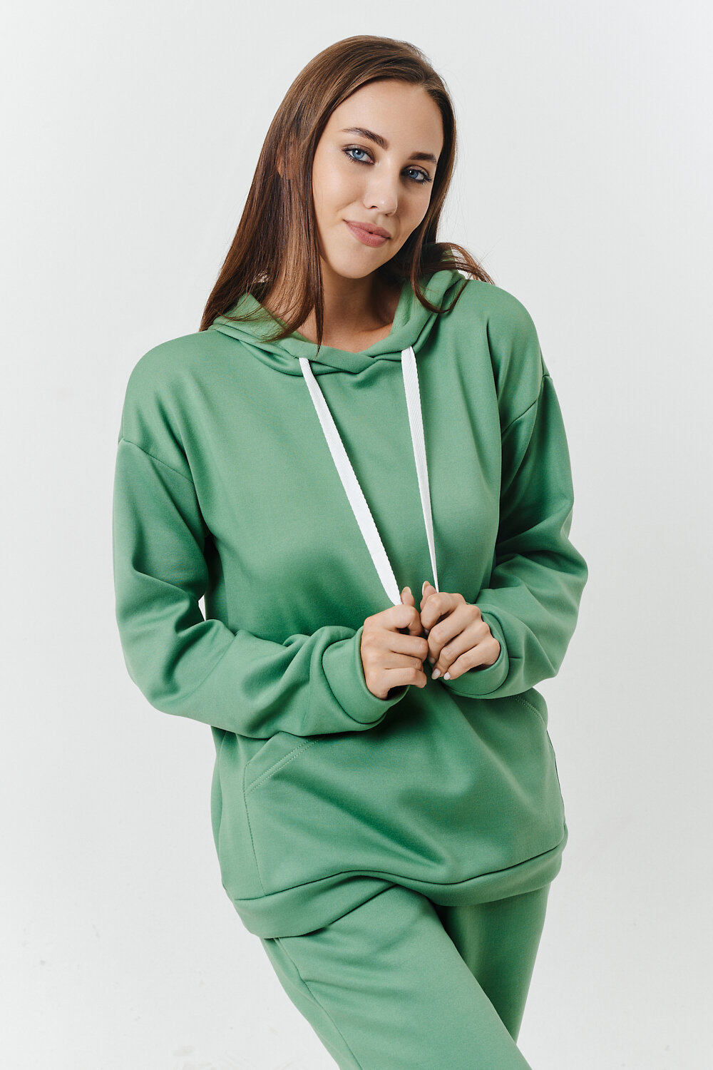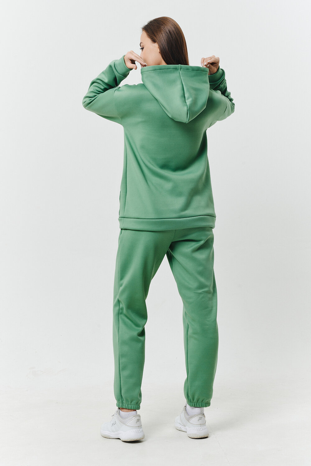Стильный женский костюм состоит из худи с капюшоном и карманом кенгуру, удобные брюки внизу собраны на резинку в виде манжета. Поможет Вам быть в тренде этого сезона! Костюм из мягкой толстовки со спущенным рукавом и брюками прекрасно подойдет для вечерних и повседневных образов, для прогулок и занятий спортом, а также в качестве костюма для дома. Брюки из футера очень удобны в качестве повседневной одежды, не сковывают движения. Костюм двойка выполнен из трикотажа на меху, не теряет форму после многочисленных стирок, не скатывается. Костюм идеально походит для носки в осенне-зимнее время года.