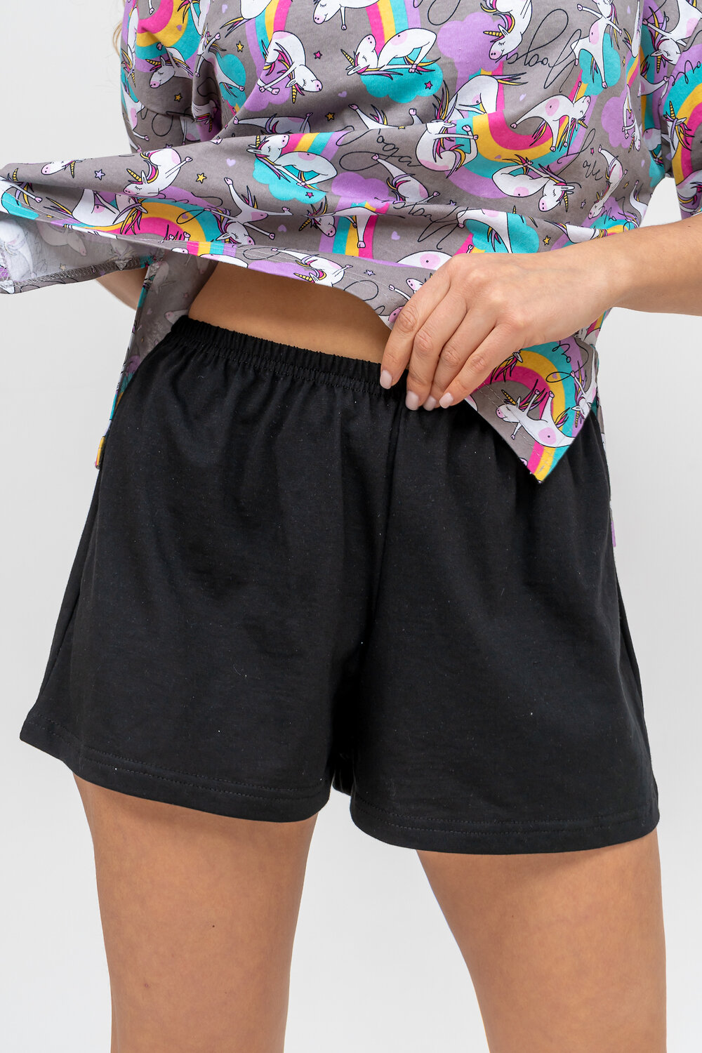 Женский модный костюм - это невероятно удобный вариант одежды для дома, сна, отдыха или пижамной вечеринки. Домашний костюм двойка сшит из натурального хлопка, лёгкого и приятного материала. Пижама состоит из свободной футболки с новым трендовым дизайном ткани и свободных шорт. Стильный костюм комфортно садится по фигуре, выглядит женственно и привлекательно, очаровывая всех. А также модель такого плана - это отличная идея для полезного и практичного подарка на день рождения, 14 февраля, 8 марта и любой другой праздник. Мы уверены, что эта хлопковая пижама подарит Вам истинное наслаждение при каждодневном использовании. Выбирайте деликатный способ стирки при температуре 30С, тогда домашний комплект прослужит долго.