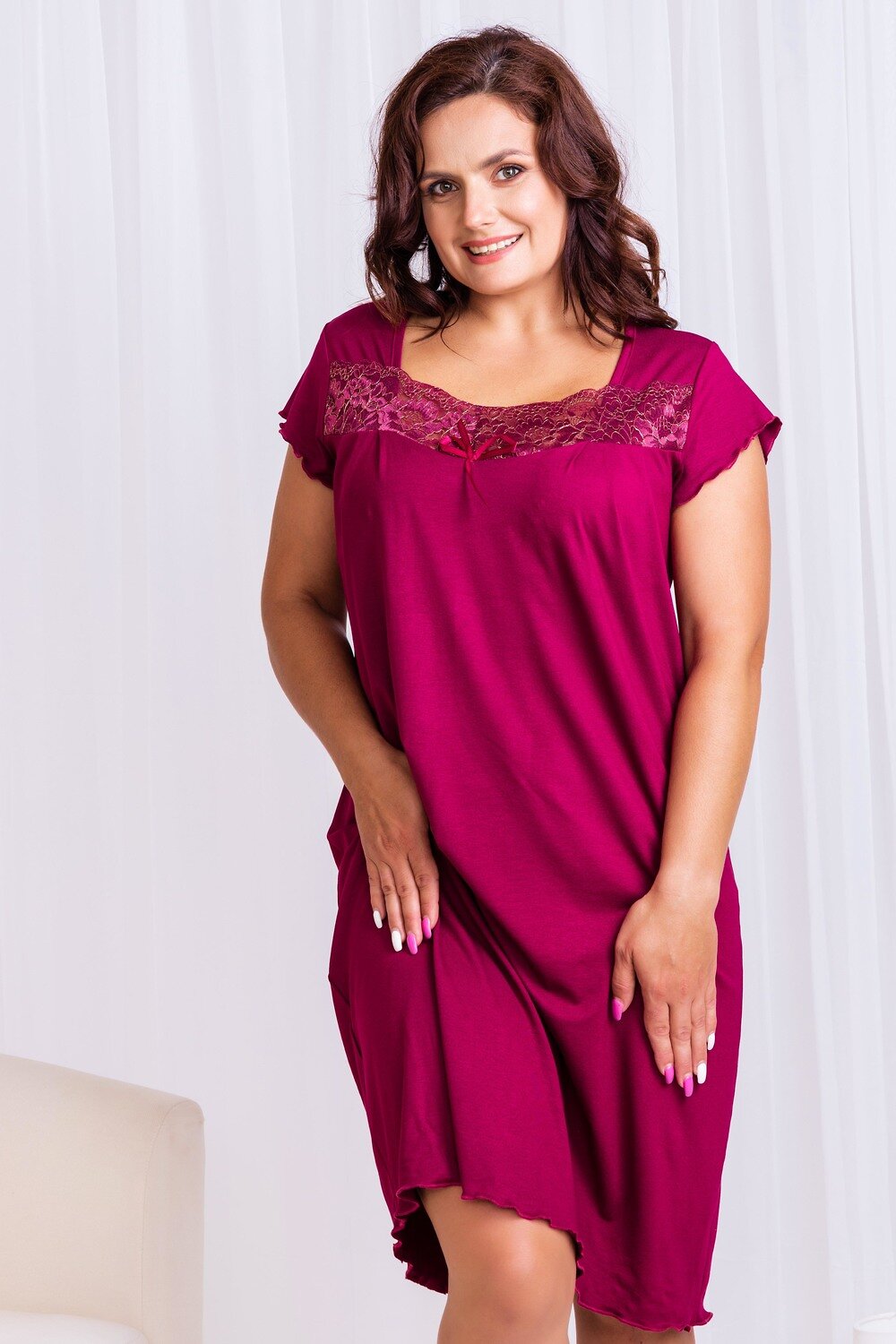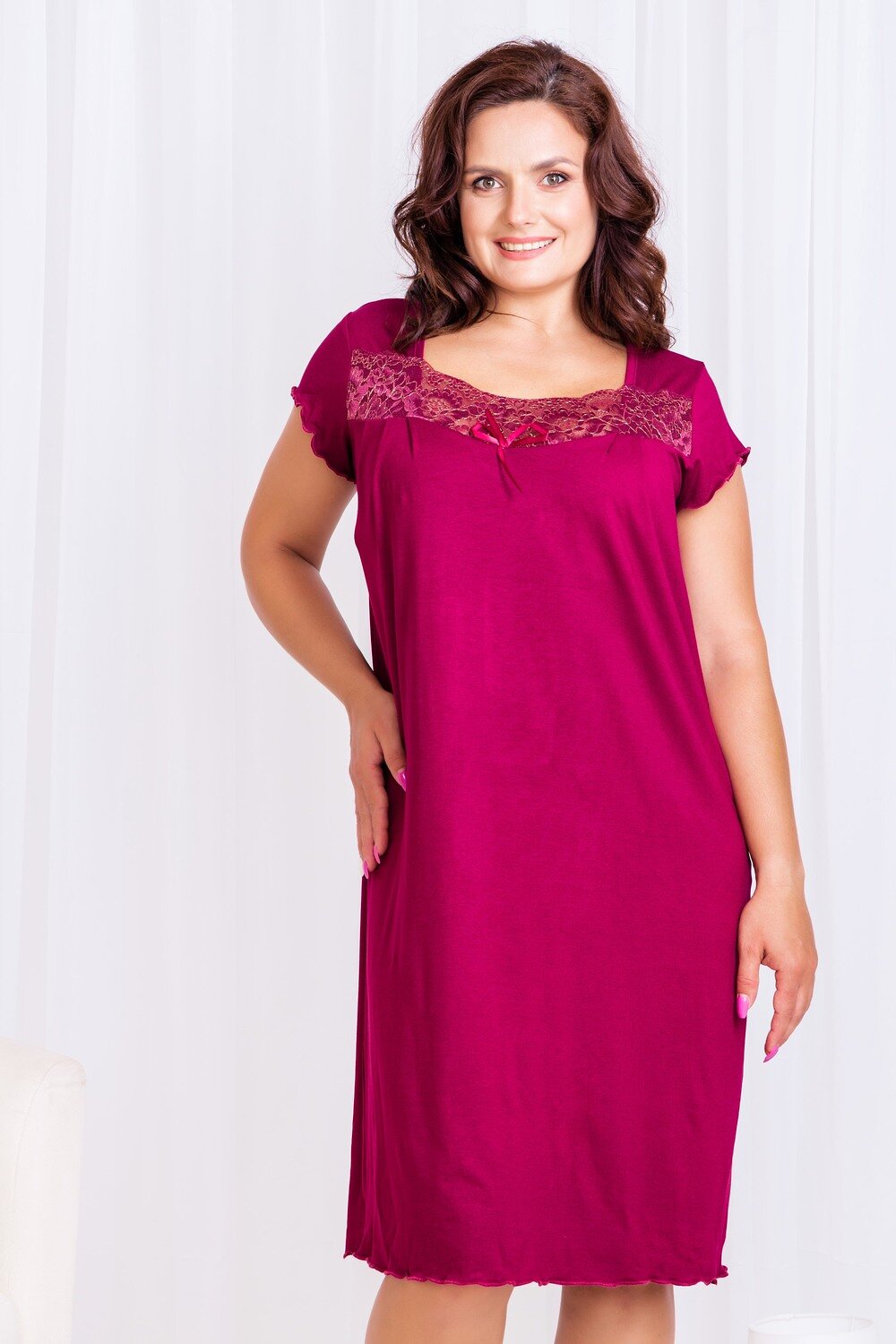 Сорочка женская. Отделка по груди из кружевной кокетки. Короткий рукав крылышко. Низ изделия и рукав обработаны краевым швом.