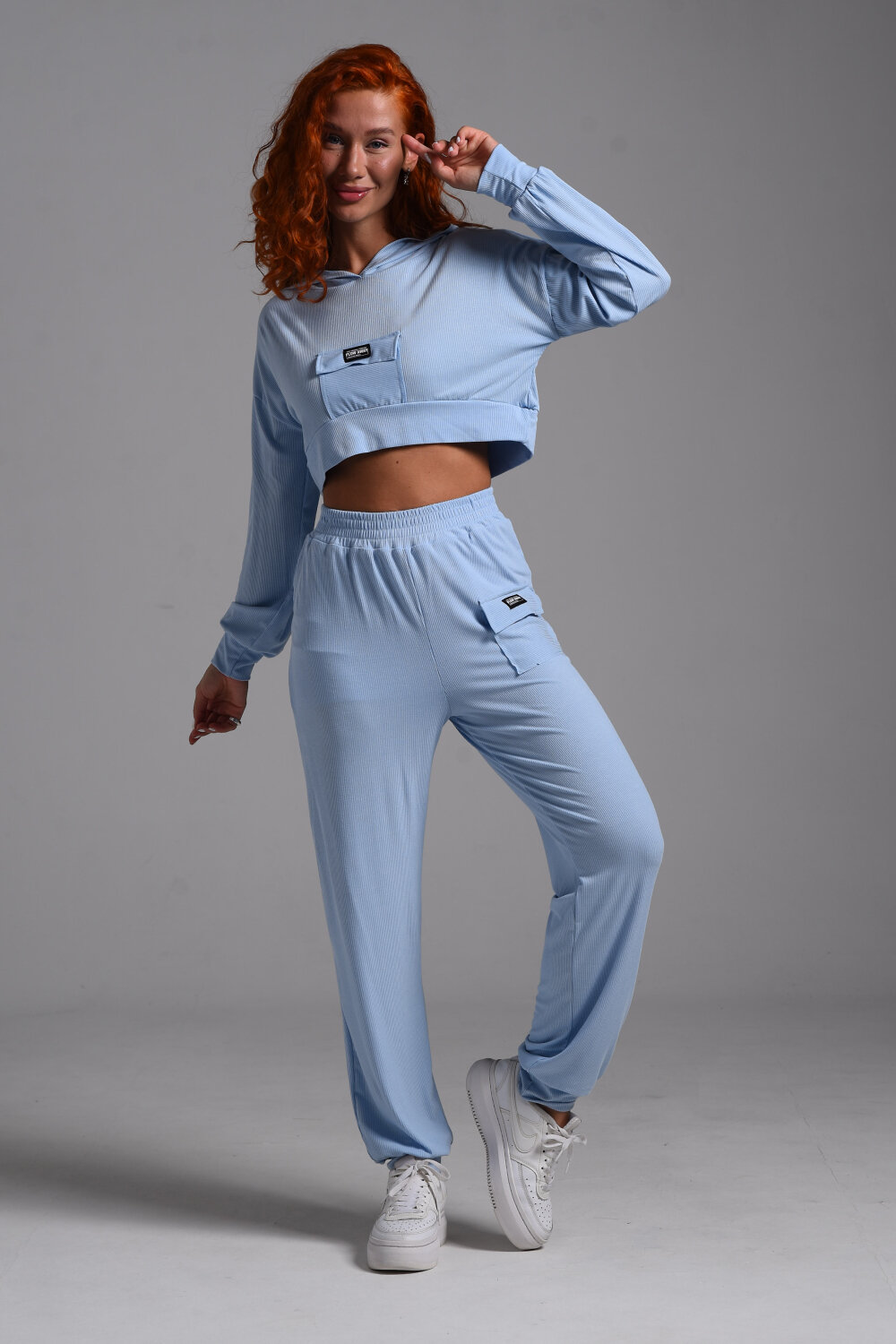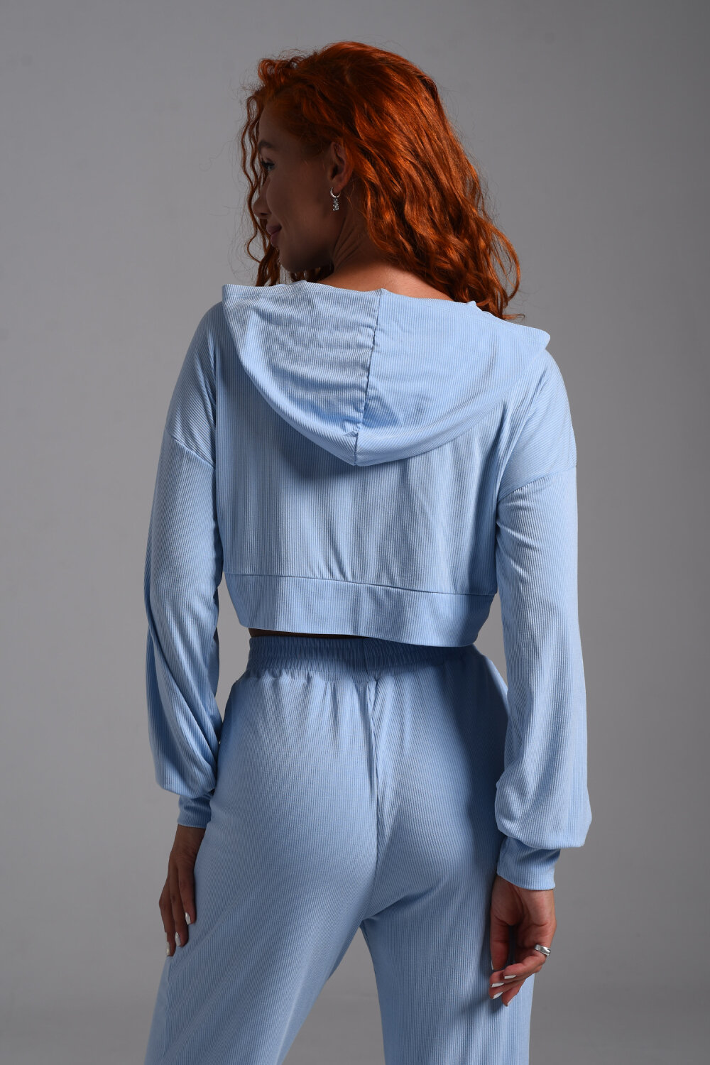 Стильное укороченное худи с капюшоном и длинными рукавами выполнено из очень мягкой приятной к телу ткани в мелкий рубчик. Худи свободного кроя с маленьким кармашком с клапаном на груди. Отлично сочетается с майками, топами, спортивными брюками, шортами, юбками.