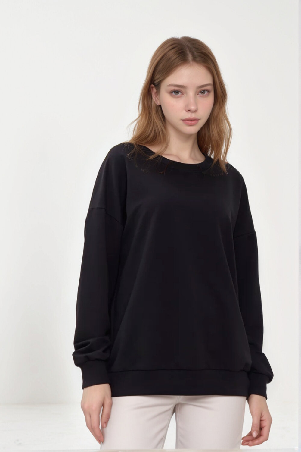 Свитшот женский базовый позволит быть стильной в легкую осеннюю и зимнюю погоду. Представляем тебе нашу универсальную женскую толстовку - свитшот, который стал настоящим хитом этого сезона! Оверсайз свободного кроя делает это худи идеальным вариантом не только для занятий спортом, но и для повседневного образа. Модель без начеса выполнена из очень приятного к телу материала, она не потеряет форму, не растянется, сохранит цвет даже после многочисленных стирок. Легкая и приятная на ощупь ткань позволит тебе чувствовать себя комфортно в любой ситуации. Длина рукава измеряется от плечевого шва.