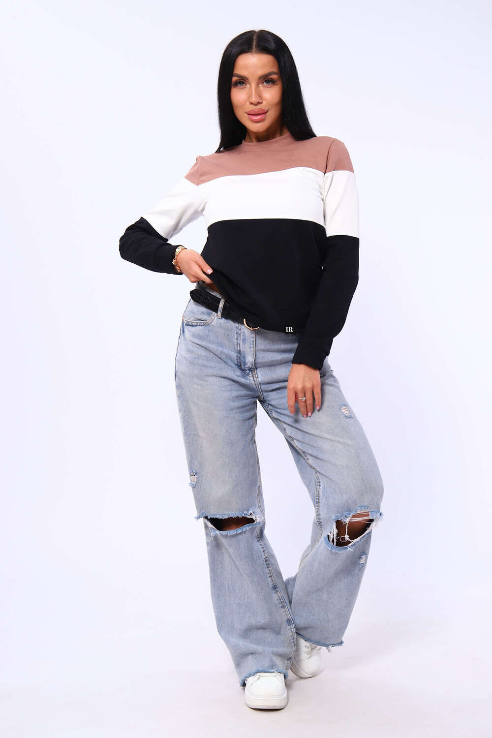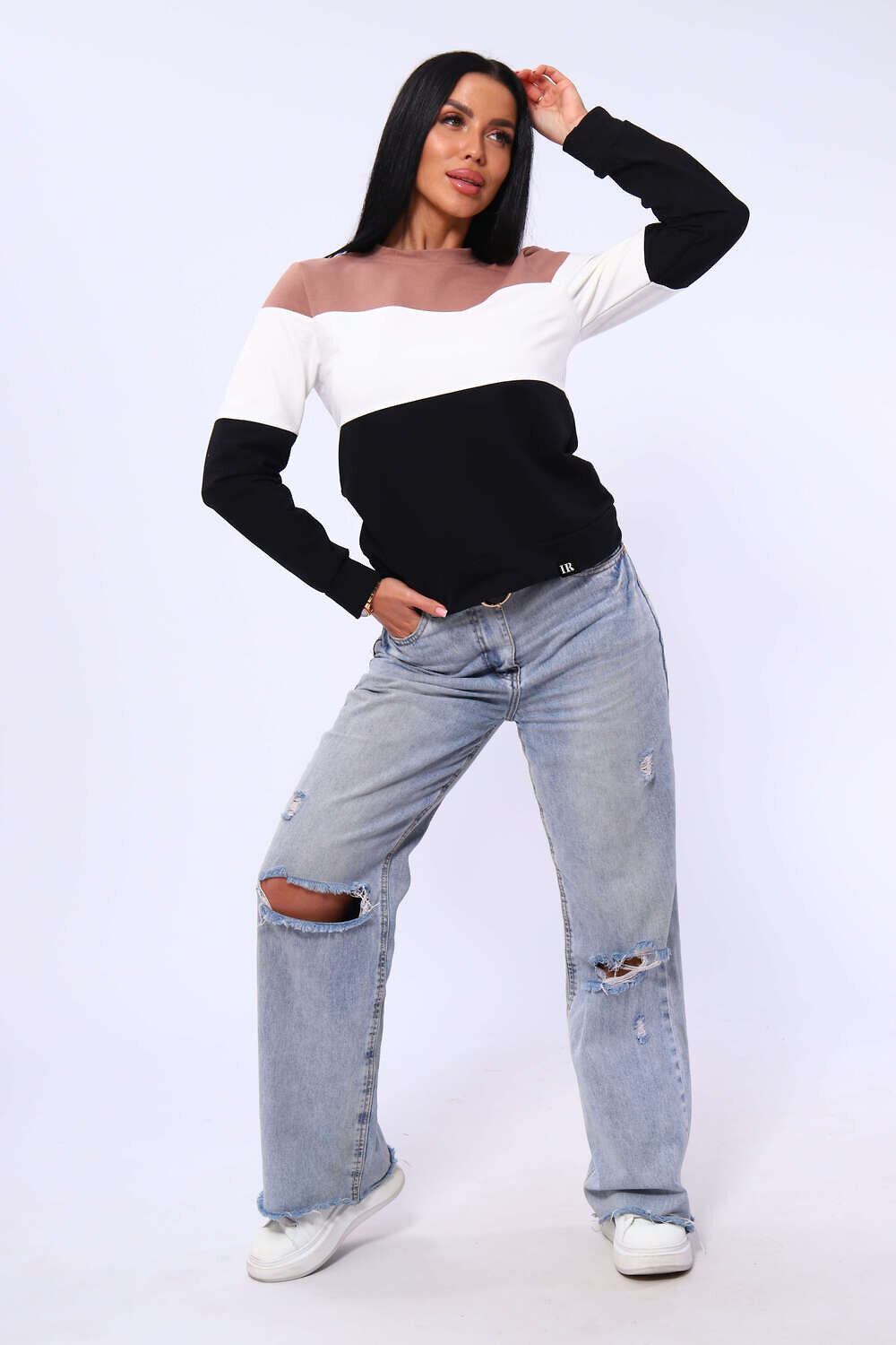 Кофта женская оверсайз с яркими вставками - модный тренд сезона. Толстовка подчеркнет вашу индивидуальность, яркие вставки придадут свежести и уверенности. Лонгслив с округлой горловиной с прекрасным сочетанием цветов впишется в ваш гардероб и станет одной из любимых в нем вещей. Женский свитшот оверсайз прямого силуэта без карманов - кофта с длинным рукавом на манжете, не имеет молний и застежек и выполнена из трикотажной ткани - футер 2-х нитка из премиум хлопка. Повседневный молодежный свитшот универсален, поэтому комбинируется с любыми вашими вещами. Удлиненный джемпер можно носить с любой обувью. Домашняя толстовка представлена в широкой цветовой гамме в маленьких и больших размерах, от 42 до 56, поэтому ее можно заказать для девочек, девушек, женщин любого возраста, также подойдет для беременных женщин, идеально подходит для женщин с пышными формами. Универсальная кофта больших размеров подчеркнет ваши достоинства и скроет недостатки. Такая базовая вещь как спортивная толстовка пользуется популярностью на протяжении всех сезонов, так как ее можно носить всегда и везде.