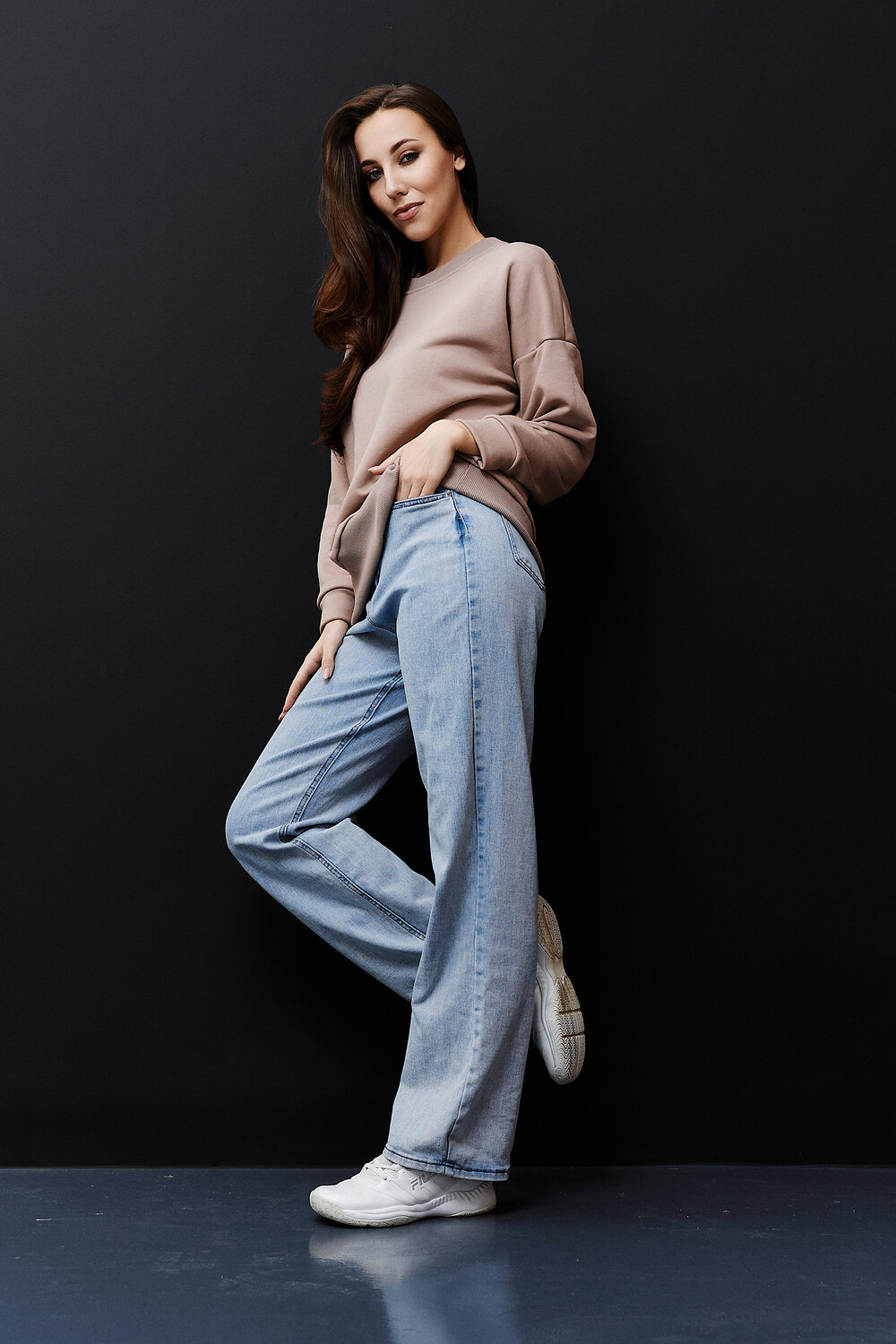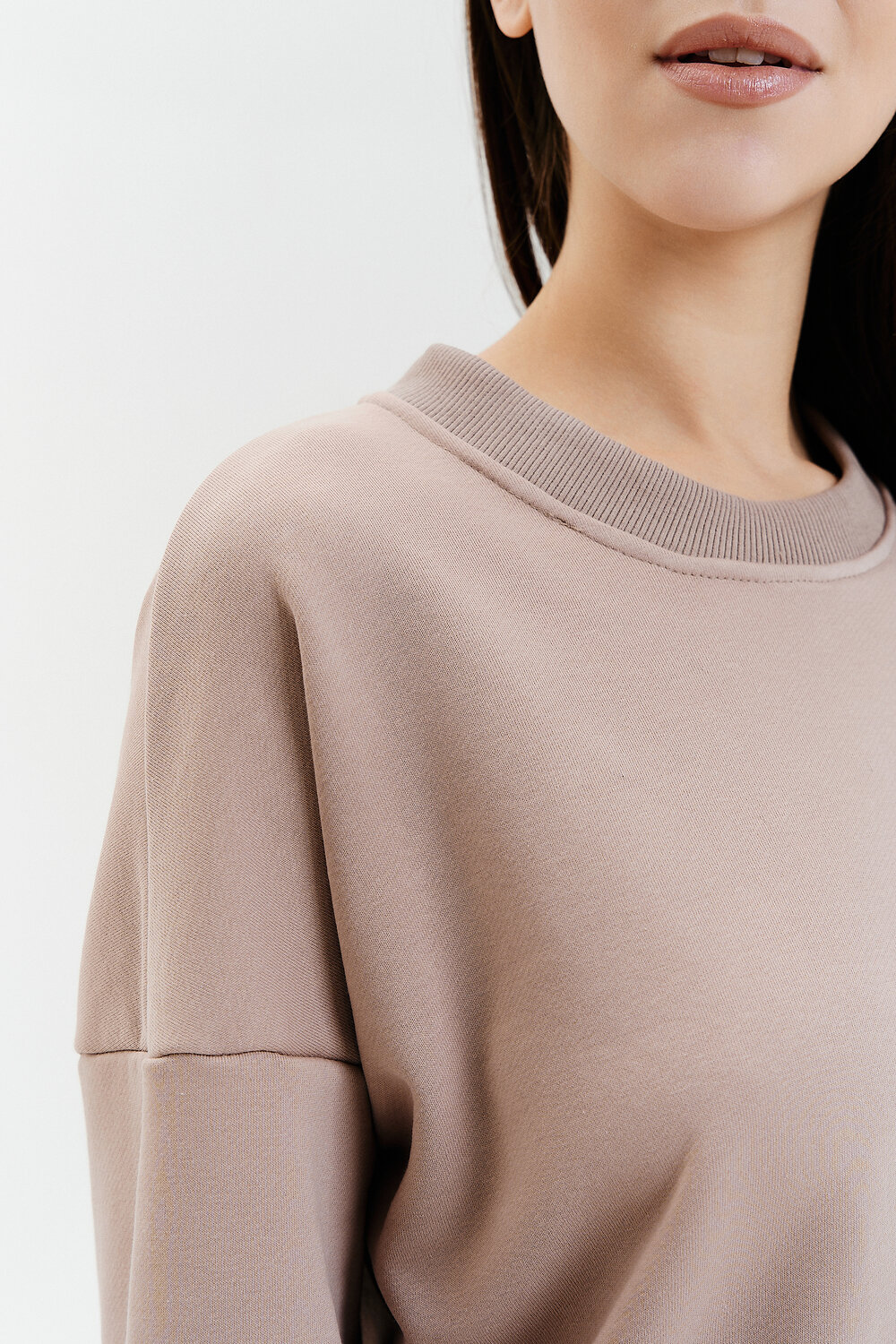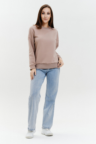 Толстовка женская Oversize, ткань футер 3-х нитка петля, состав 65% хлопок, 35% ПЭ. Толстовка свободного прямого кроя на поясе, слегка заужена книзу, спущенный рукав с манжетом. В этой толстовке вам будет тепло и уютно в любое время года. Легкая в уходе. Рост модели на фото 170см, размер 42-44