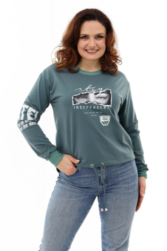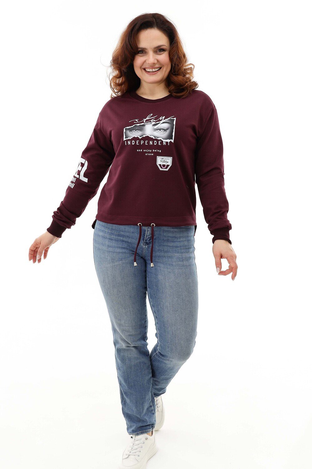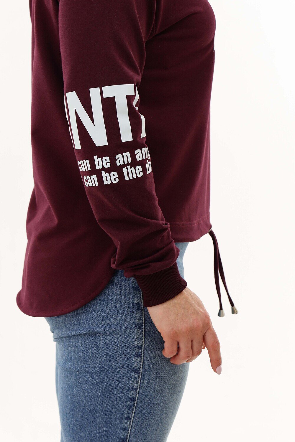 Толстовка оверсайз - трендовая модель, которая прекрасно впишется в любой модный лук. Толстовка длинной до середины бедра по полочке и удлиненной спинкой, со спущенной линией плеча. Стильная черно-белая печать. Манжеты и горловина из кашкорсе в тон ткани. Низ изделия регулируется кулиской.