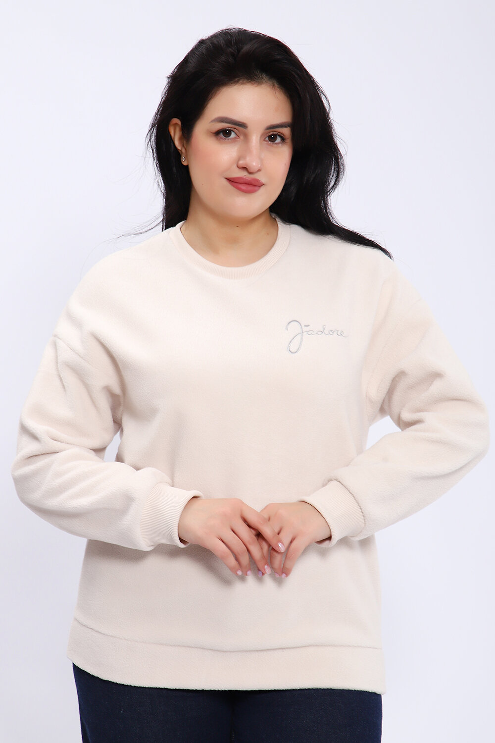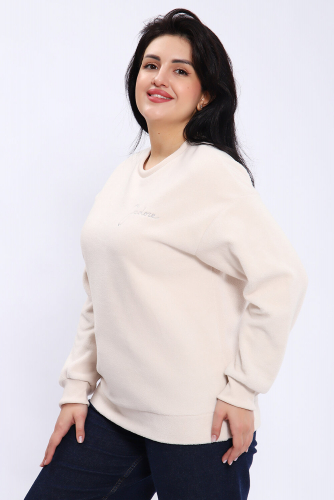 Свитшот женский из футера 3-х нитки барашек качества пенье. Модель свободного кроя в стиле оверсайз, спущенная пройма, горловина и манжеты обработаны эластичным кашкорсе, на груди слева вышивка. Низ джемпера на широком манжете из основного полотна. Толстовка стильная, приятная к телу, выполнена из двухслойного, плотного трикотажа - внутри интерлок -хлопок, с наружи начёс в виде пушистого барашка из полиэстера. Барашек не скатывается, не пиллингуется. Универсальный, тёплый свитшот - необходимая вещь в прохладную погоду, отлично подойдёт для прогулок, активного отдыха, занятием спортом.