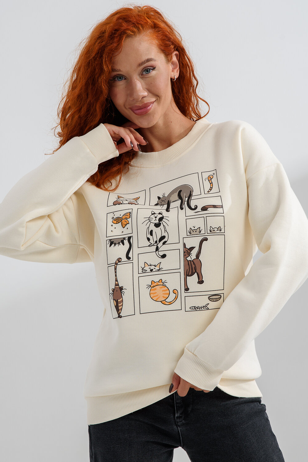 Натали Свитшот 8569молочный+коты