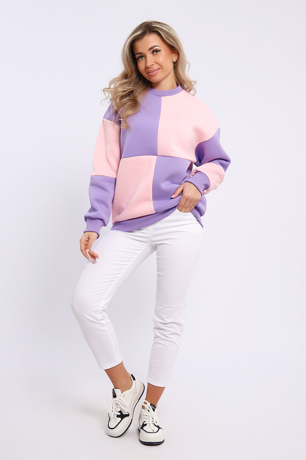 Толстовка с рукавами на манжетах и круглым вырезом горловины. Свободный крой. Рукава на спущенном плече.