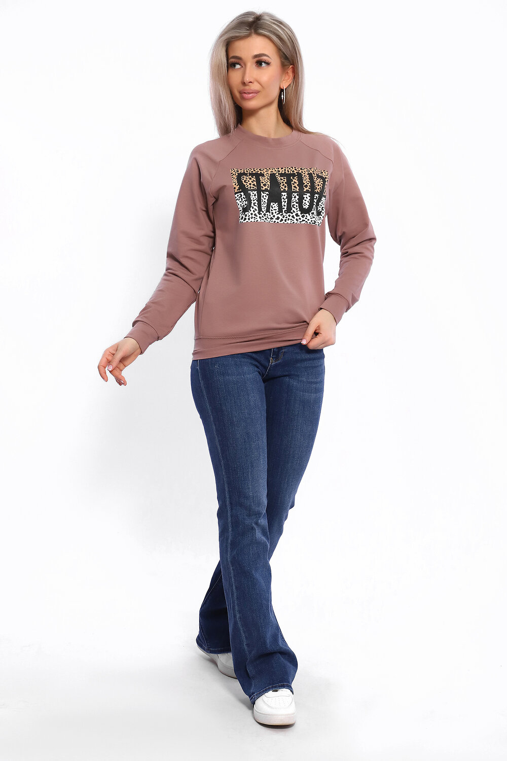 Толстовка женская приталенная бренда выполнена из качественного хлопкового трикотажа (футер 2-х нитка), который не деформируется при стирке и во время носки, благодаря этому материалу толстовка будет радовать вас своим видом и дарить приятные тактильные ощущения не один сезон. Стильная базовая толстовка подчеркнет достоинства фигуры. Теплая и уютная вещь в спортивном стиле заменит вам худи и спортивную одежду, пуловер и базовую кофту, свитер и джемпер. Удлиненная толстовка свободного кроя деликатно скроет несовершенства полной фигуры. Широкая размерная сетка является несомненным плюсом наших изделий и благодаря этому вы не ошибетесь при выборе идеального для вас свитшота. Свитер женский оверсайз можно сочетать с джинсами. В нем вы сможете с комфортом заниматься любимым видом спорта дома, на улице или в спортзале (фитнес, кроссфит, йога). Молодежный свитшот с широкими рукавами и чуть удлиненной спинкой станет необычным, но приятным подарком на день рождения девушке, маме, подруге, коллеге или сестре. Плотная, но в то же время дышащая ткань с небольшим добавлением искусственных волокон будет приятна к телу. Для приобретения идеального для Вас свитшота, пожалуйста, ориентируйтесь на нашу размерную сетку. Произведено в России качественно и с любовью! Кофты оверсайз подойдут для тех, кто хочет выглядеть великолепно и комфортно одновременно. Свитшот с леопардовым принтом станет универсальным элементом гардероба.