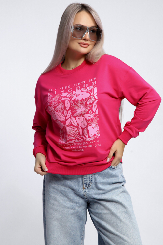 Толстовка свободного кроя оверсайз со спущенной линией плеча прекрасный вариант для прохладной погоды! Мягкое, эластичное кашкорсе в тон ткани использовано для отделки горловины, манжет и пояса. На полочке декоративный принт.
