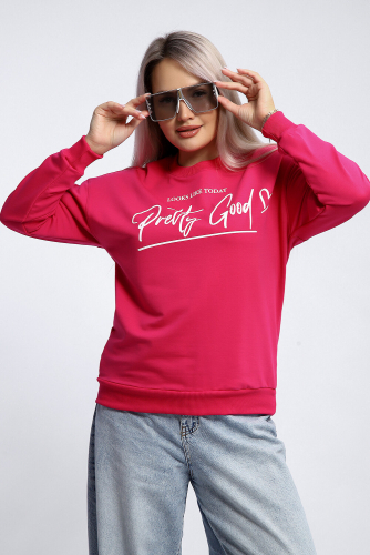 Толстовка свободного кроя оверсайз со спущенной линией плеча прекрасный вариант для прохладной погоды! Мягкое, эластичное кашкорсе в тон ткани использовано для отделки горловины, манжет и пояса. На полочке декоративный принт.