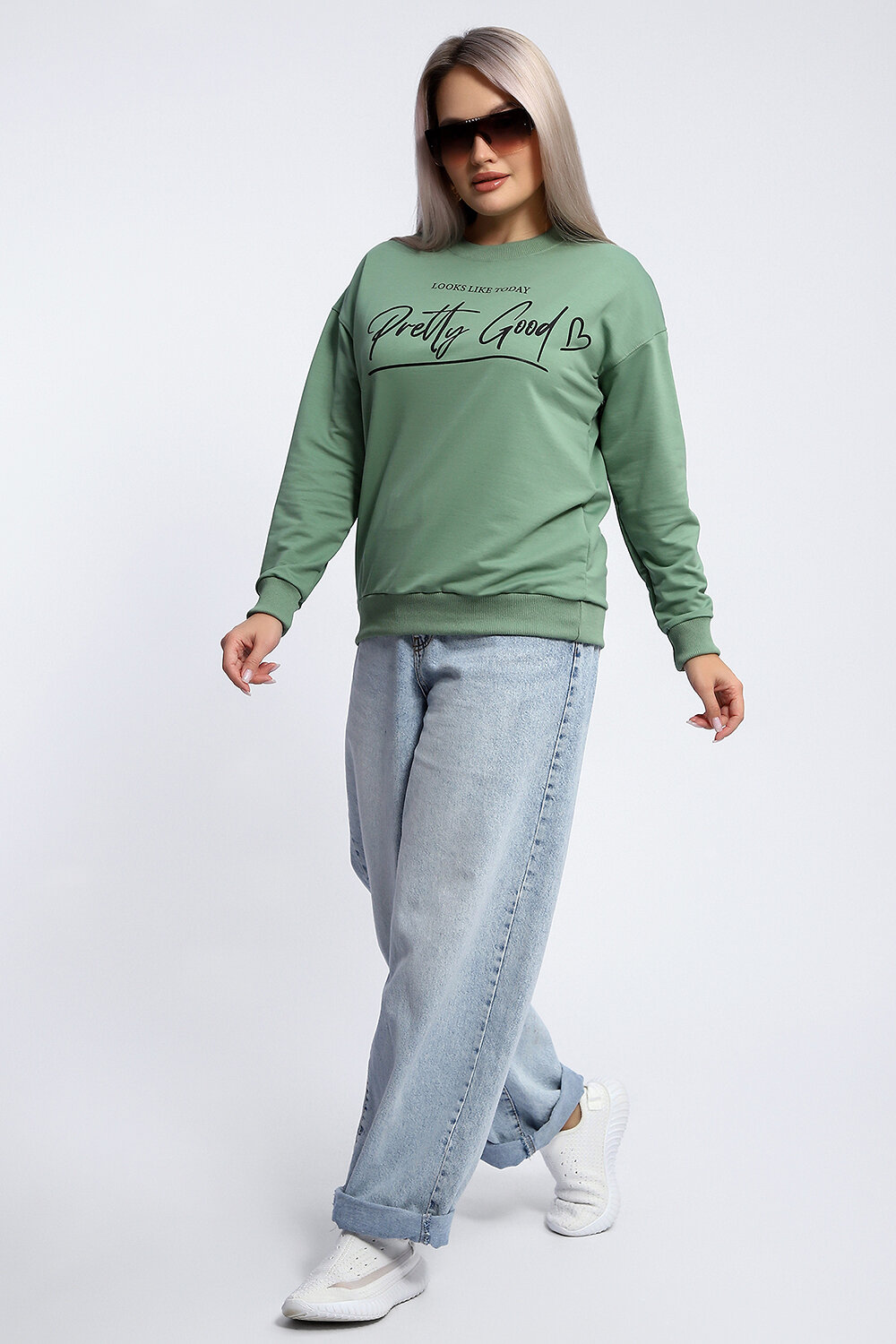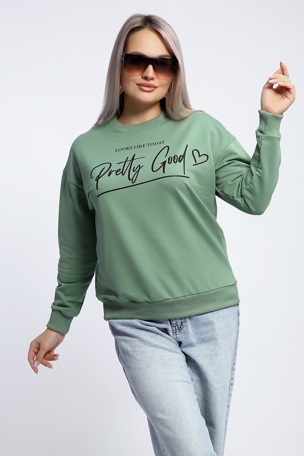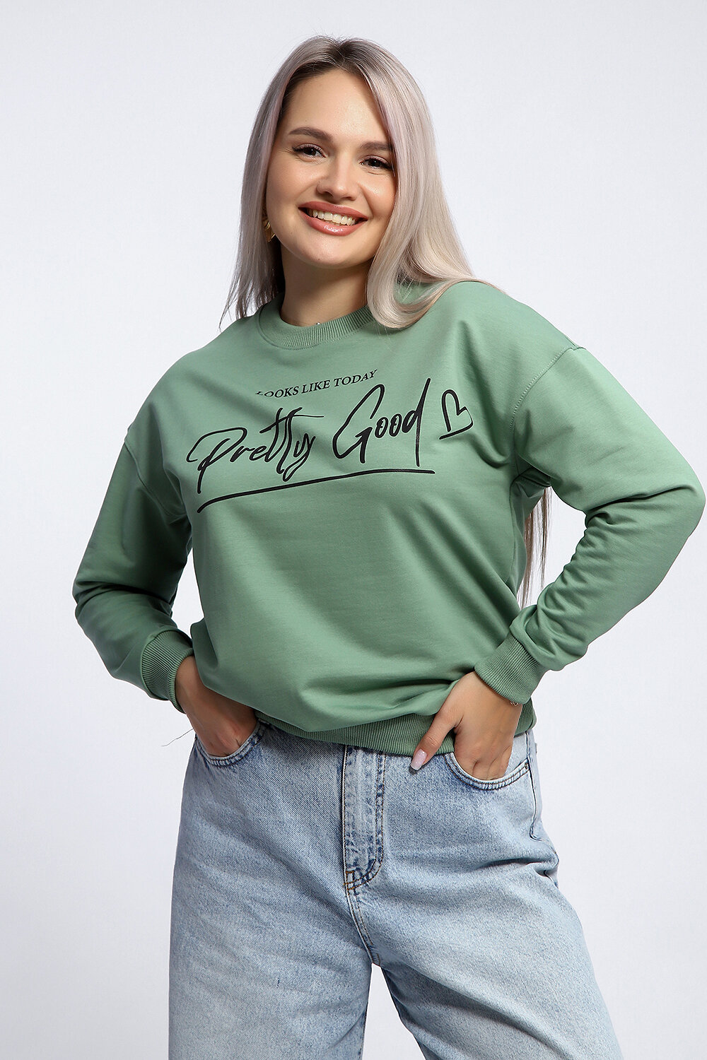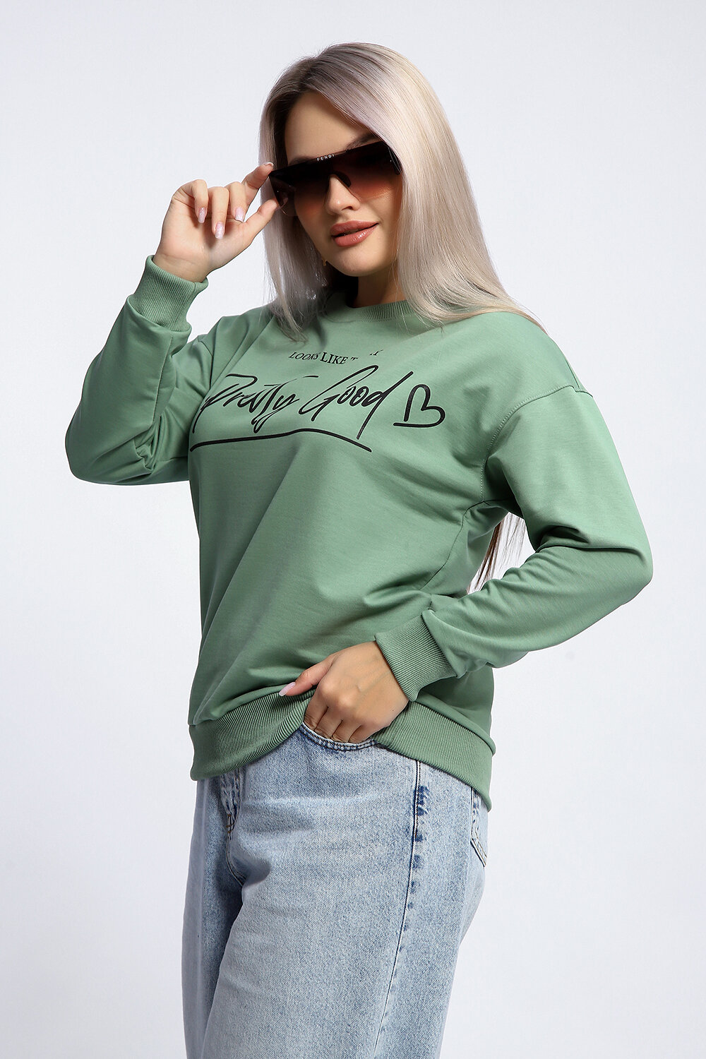 Толстовка свободного кроя оверсайз со спущенной линией плеча прекрасный вариант для прохладной погоды! Мягкое, эластичное кашкорсе в тон ткани использовано для отделки горловины, манжет и пояса. На полочке декоративный принт.
