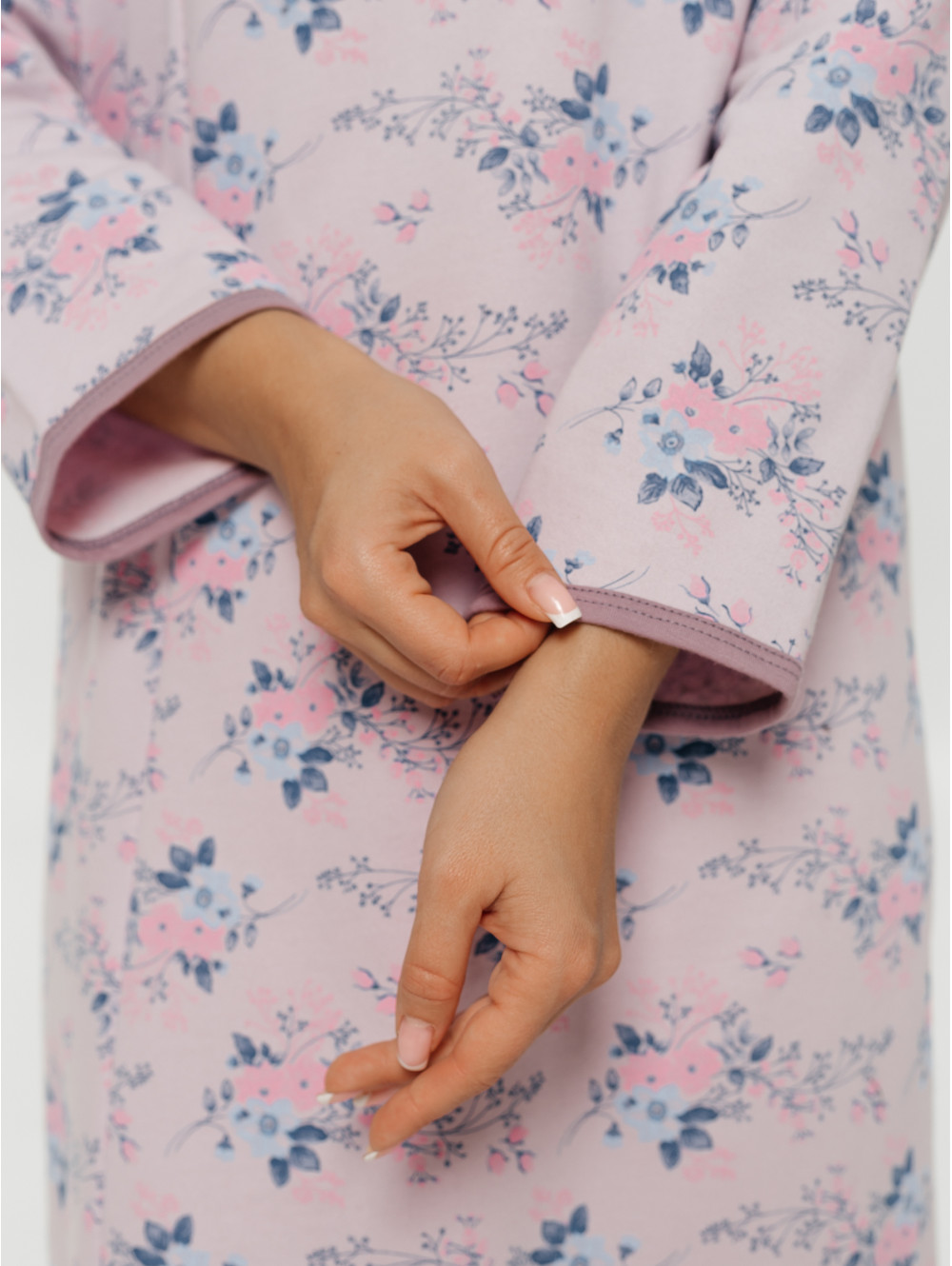 Во сне мы проводим почти половину жизни. Поэтому мы хотим, чтобы наш сон был по-настоящему сладким. Представляем Вам нашу сорочку с рукавом 3 /4 НЕЖЕНКА. Выполненная из футера с начесом, она прекрасно подойдёт девушкам и женщинам разного возраста для сна и отдыха, а также согреет Вас своим теплом в холодные дни. Простота кроя порадует Вас удобством. Фигурный вырез горловины формируют 2 отрезные кокетки с пуговицами. На полочке сорочки рельеф, переходящий в разрез. Желаем Вам приятных сновидений. Футер является натуральной тканью: он изготавливается из хлопка. Благодаря этому, ткань позволяет коже "дышать", великолепно сохраняя при этом тепло. Футер хорошо впитывает влагу и при этом остается гипоаллергенным.