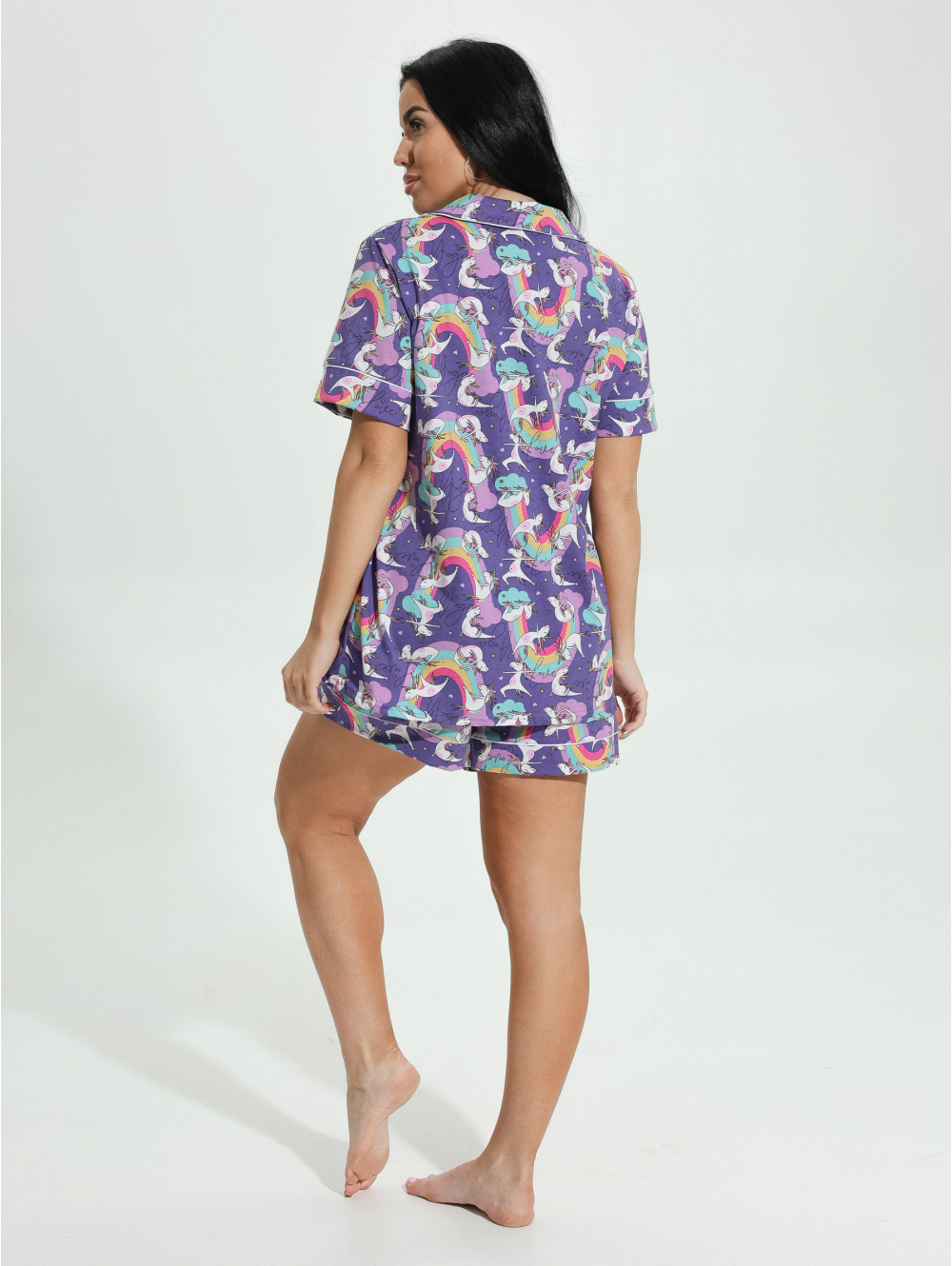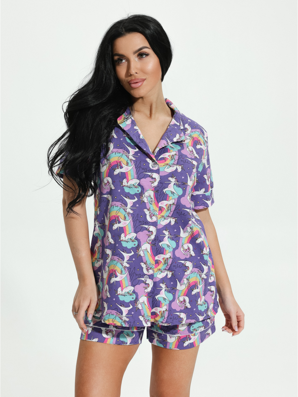 Пижама женская состоит из жакета и шорт. Жакет прямого силуэта.