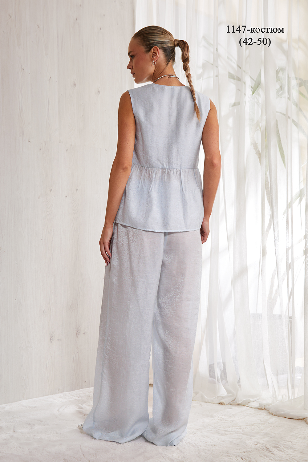 Комплект из тонкого фактурного тенсела (вискоза), состоит из брюк и блузы.